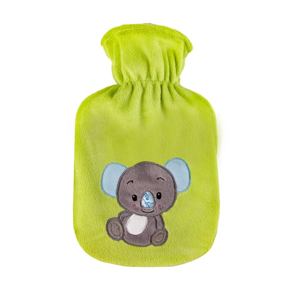 Children's heat bottle with reference These children's heat bottles with funny motifs from Sänger GmbH provide calming and soothing warmth in the cold season.The rubber heat bottles of Sänger GmbH offer special security for children.All rubber heat bottles from singers are easy to care for and easy to handle.Sänger GmbH has a large selection in color, pattern, size and motif of children's rubber heat bottles. Product information for the hot water bottle * Children's heat bottle Koala Chloe Properties of the 0.8 liter hot bottle * maximum security - through production as a coherent body * no glued neck piece or additional seams * from natural rubber - high heat conduction * without plasticizers * High elasticity * 0.8 liter capacity * all around smooth: for quick and intensive heat delivery * TÜV design checked > * Made according to B.S.Standard 1970: 2012 * ISO 9001: 2015 certified * renewable raw material, therefore sustainable product Heat bottle cover * Velor's cover in happy Kiwigrün with a cute koala application * soft and cozy * washable LEGAL NOTICE Your safety is important to us!Before each use, always check the heat bottle and closure screw for cracks, fragility, deformation or other damage, if necessary remove the fabric cover.For correct, secure filling, please note the enclosed instructions for use with drawings.Never expose the heat bottle to any pressure by lying on it, sitting or leaning, hot water bottle is suitable for warming up the bed and should be removed in front of the bed.Do not heat the heat bottle in the microwave device, in an oven, on a grill or other heat sources and never use it together with a heating ceiling.The rubber heat bottle should not be placed on the radiator or a warm surface.Rubber melts at a temperature of 180 ° C (356 ° F).We hope you enjoy our singer hot water bottle for a long time!Empty the heat bottle after use and hang down with the opening for drying at room temperature.Warm bottle dry, not kinked and not filled, also avoid contact with sunlight, cleaning agents, oil and fat.Let the closure unscrewed during storage.The sealing screw can also be attached to the hot water bottle with a tape.Do not place objects on the hot water bottle.It is recommended to replace the hot water bottles after one year or as soon as they have signs of wear.Replacement screw caps are available from Sänger GmbH/ Schrozberg.Poly bags can be dangerous.Singer hot bottles and poly bags are not toys and not suitable for children.To avoid the risk of suffocation through a poly bag, keep the poly bag of babies and toddlers away.Keep packaging and receipt for future use and security recommendations.You can find detailed information on use and detailed instructions for heat bottles when using babies or small children can be found on the Internet at www.sanger.de.coverable.Heat bottle produced as a coherent body, not with a glued neck or additional seams.made from 100 %natural gum-without the addition of plasticizers.BS 1970: 2012 checked, ISO-certified production.0.8L hot water bottle with a soft velor cover and cute koala apllication. Kinderwärmflasche mit Bezug Diese Kinderwärmflaschen mit lustige Motiven von der Sänger GmbH spenden beruhigende und wohltuende Wärme in der kalten Jahreszeit. Spezielle für Kinder bieten die Gummi-Wärmflaschen der Sänger GmbH höchste Sicherheit. Alle Gummi-Wärmflaschen von Sänger sind pflegeleicht und einfach zu handhaben. Die Sänger GmbH hat eine große Auswahl in Farbe, Muster, Größe und Motiv an Kinder-Gummiwärmflaschen. Produktinformationen zur Wärmflasche * Kinderwärmflasche Koala Chloe Eigenschaften der 0,8 Liter Wärmflasche * höchste Sicherheit - durch Herstellung als zusammenhängender Körper * kein eingeklebtes Halsstück oder zusätzliche Nähte * aus Naturgummi - hohe Wärmeleitung * ohne Weichmacher * hohe Elastizität * 0,8 Liter Fassungsvermögen * rundum glatt: für eine schnelle und intensive Wärmeabgabe * Tüv Bauart geprüft > * hergestellt nach B.S. Standard 1970:2012 * ISO 9001:2015 zertifiziert * nachwachsender Rohstoff, daher nachhaltiges Produkt Wärmflaschen-Bezug * Veloursbezug in fröhlichem kiwigrün mit niedlicher Koala-Applikation * weich und kuschelig * waschbar RECHTLICHE HINWEISE Ihre Sicherheit ist uns wichtig! Vor jeder Verwendung Wärmflasche und Verschlussschraube immer auf Risse, Brüchigkeit, Verformung oder andere Beschädigungen prüfen, hierzu ggf. Stoffbezug entfernen. Zum korrekten, sicheren Befüllen beachten Sie bitte beiliegende Gebrauchsanweisung mit Zeichnungen. Die Wärmflasche niemals jeglichem Druck aussetzen indem man darauf liegt, sitzt oder sich anlehnt, Wärmflasche eignet sich zum Anwärmen des Bettes und sollte vor dem zu Bett gehen entfernt werden. Wärmflasche keinesfalls im Mikrowellengerät, in einem Ofen, auf einem Grill oder anderen Hitzequellen erwärmen und niemals zusammen mit einer Heizdecke benutzen. Die Gummi-Wärmflasche sollte nicht auf Heizkörper oder einer warme Oberfläche gelegt werden. Gummi schmilzt bei einer Temperatur von 180°C (356°F). Wir wünschen Ihnen lange Freude an unserer Sänger Wärmflasche! Wärmflasche nach dem Gebrauch entleeren und zum Trocknen bei Zimmertemperatur mit der Öffnung nach unten aufhängen. Wärmflasche trocken, nicht geknickt und nicht befüllt lagern, zudem Kontakt mit Sonnenlicht, Reinigungsmitteln, Öl und Fett vermeiden. Den Verschluss bei der Lagerung abgeschraubt lassen. Die Verschlussschraube kann auch mit einem Band an der Wärmflasche befestigt werden. Keine Objekte auf der Wärmflasche platzieren. Es wird empfohlen die Wärmflaschen nach einem Jahr zu ersetzen oder sobald diese Anzeichen von Verschleiß aufweisen. Ersatz-Schraubverschlüsse sind bei der Sänger GmbH/ Schrozberg erhältlich. Polybeutel können gefährlich sein. Sänger Wärmflaschen und Polybeutel sind keine Spielzeuge und nicht für Kinder geeignet. Um Erstickungsgefahr durch einen Polybeutel zu vermeiden den Polybeutel von B