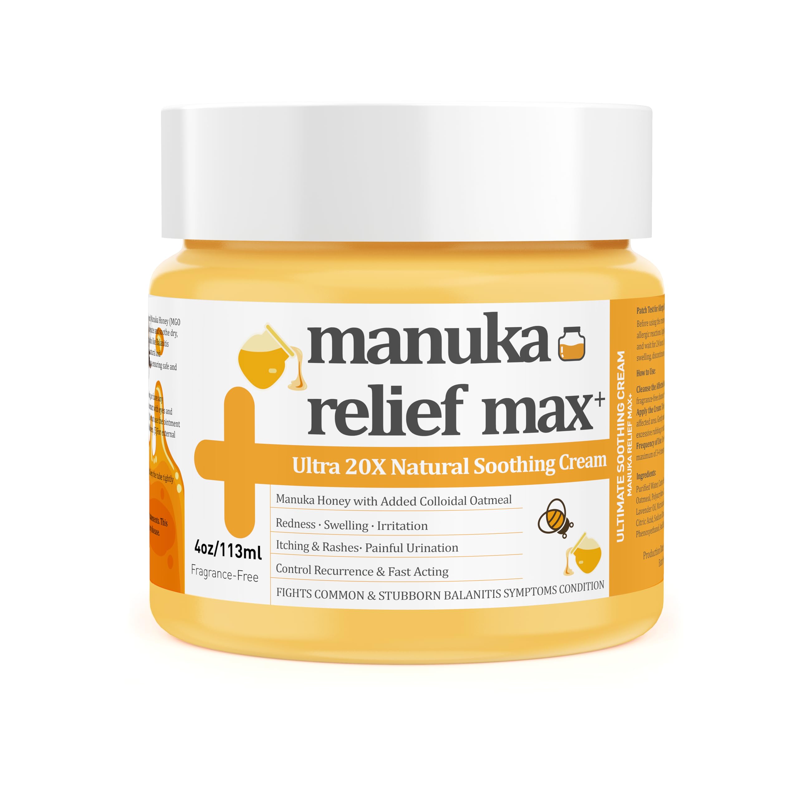 Balanitis Relief Cream - Manuka Honey Tea Tree Oil Balm, 100 Organic Natural, Gentle, Soothing Ointment, Relief from Irritation, Itch, Redness, Balanitis, Maximum Strength Treat, Fast ActingConvenient and Comfortable Application:Designed for easy application, our Natural Organic ointment glides smoothly onto affected areas, whether you're at home or on the go.Its lightweight, compact design ensures a hassle-free experience every time.Plus, we stand by our product with a satisfaction guarantee—if you're not completely satisfied within 90 days, return it for a full refund, no questions asked.Comfort and convenience are just a swipe away!. Trusted Relief Backed by Science:Our Serious Balanitis Relief Kit is grounded in advanced scientific research, effectively targeting symptoms like itching, burning, redness, and irritation.Trust in its proven effectiveness to manage Balanitis symptoms, as we prioritize your well-being with a product that works in harmony with your body to promote natural healing.With our formula, you can feel assured of relief that's backed by science. Fast-Acting Symptom Relief:Experience quick relief with our fast-acting ointment, specifically crafted for even the most sensitive skin.This soothing balm rapidly alleviates discomfort, allowing you to resume your daily activities with renewed confidence.Enjoy fast relief from itching and irritation, transforming each day into a more comfortable experience.Say goodbye to discomfort and hello to feeling your best!. Natural and Organic Ingredients:Our unique formula blends natural and organic components, including pure tea tree essential oil, to effectively ease Balanitis symptoms without harsh chemicals.Feel secure knowing our gentle formula is designed to soothe and heal, offering your skin the care it craves while fostering a balanced environment.It's the natural choice for sensitive skin, promoting recovery and overall well-being. Soothing Relief for Balanitis:Find gentle relief from Balanitis irritation with our specially formulated ointment. Crafted to reduce redness and discomfort, this deep moisturizing cream is made from all-natural, homeopathic ingredients that prioritize your skin's health.It's completely paraben-free, alcohol-free, dye-free, and fragrance-free, making it the perfect choice for sensitive skin.Discover the comfort you deserve without the risk of irritation!.