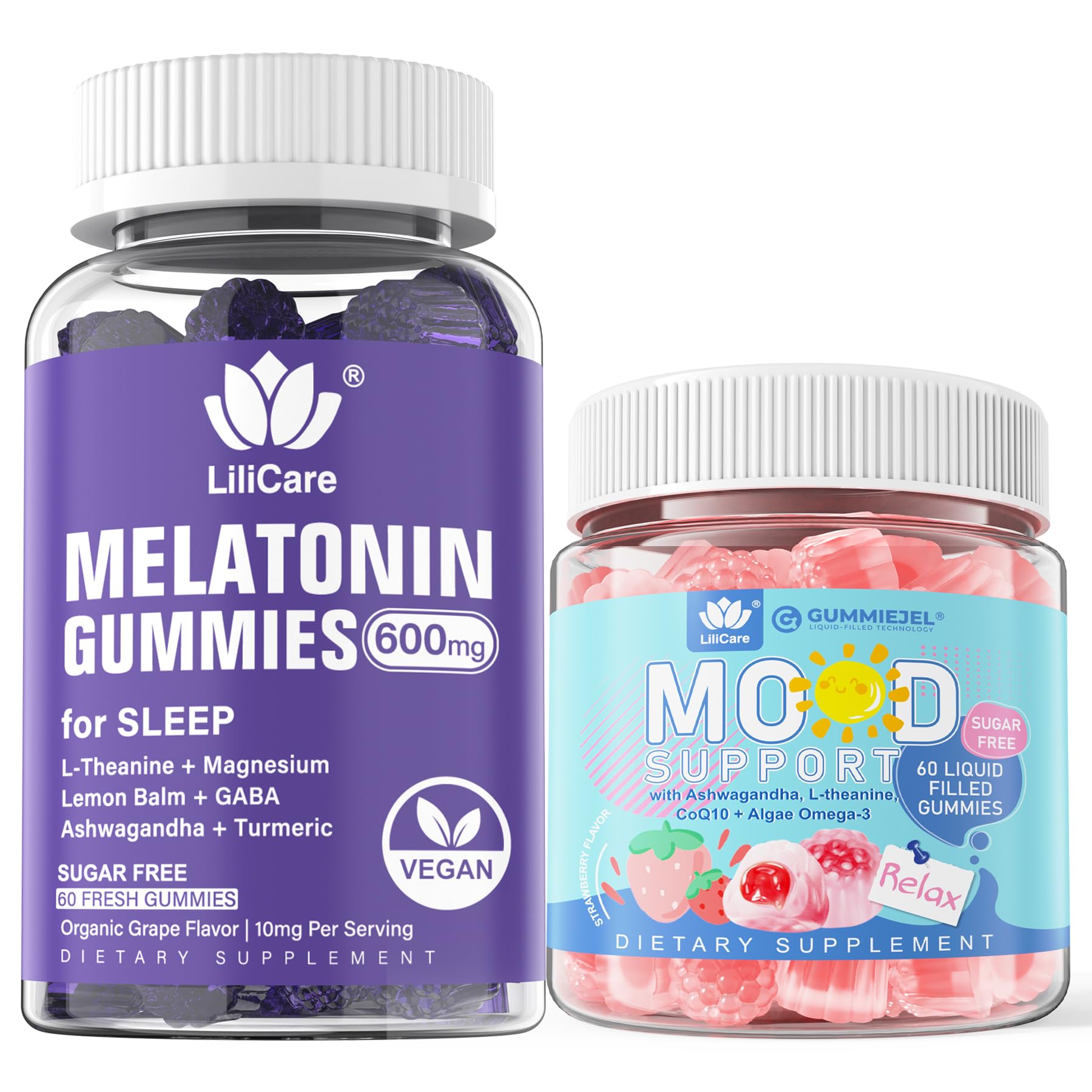 TRUSTED QUALITY. SUGAR FREE VEGAN. Natural Relax Gummies Strawberry Flavor. Ashwagandha Calm Filled Gummies. Melatonin Gummies 10mg 20mg for Adults.