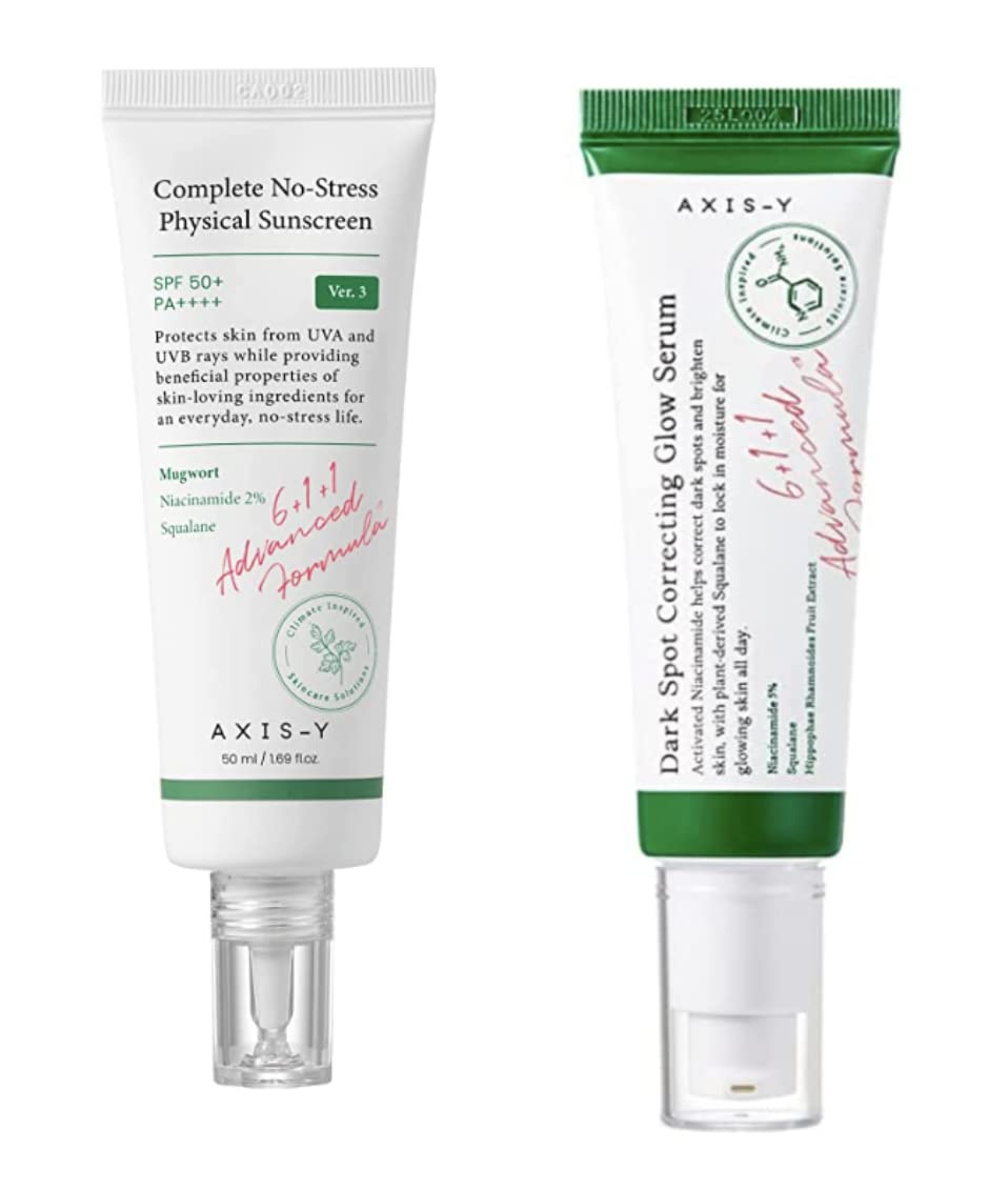 1 Pack of AXIS-Y Complete No-Stress Physical Sunscreen Ver. 3 -1.69 fl. oz and 1 pack of AXIS-Y Dark Spot Correcting Glow Serum 1.69 fl. oz. | Brightening Dark Spot Treatment Anti-Aging Acne Scars Fine Lines Hyperpi...