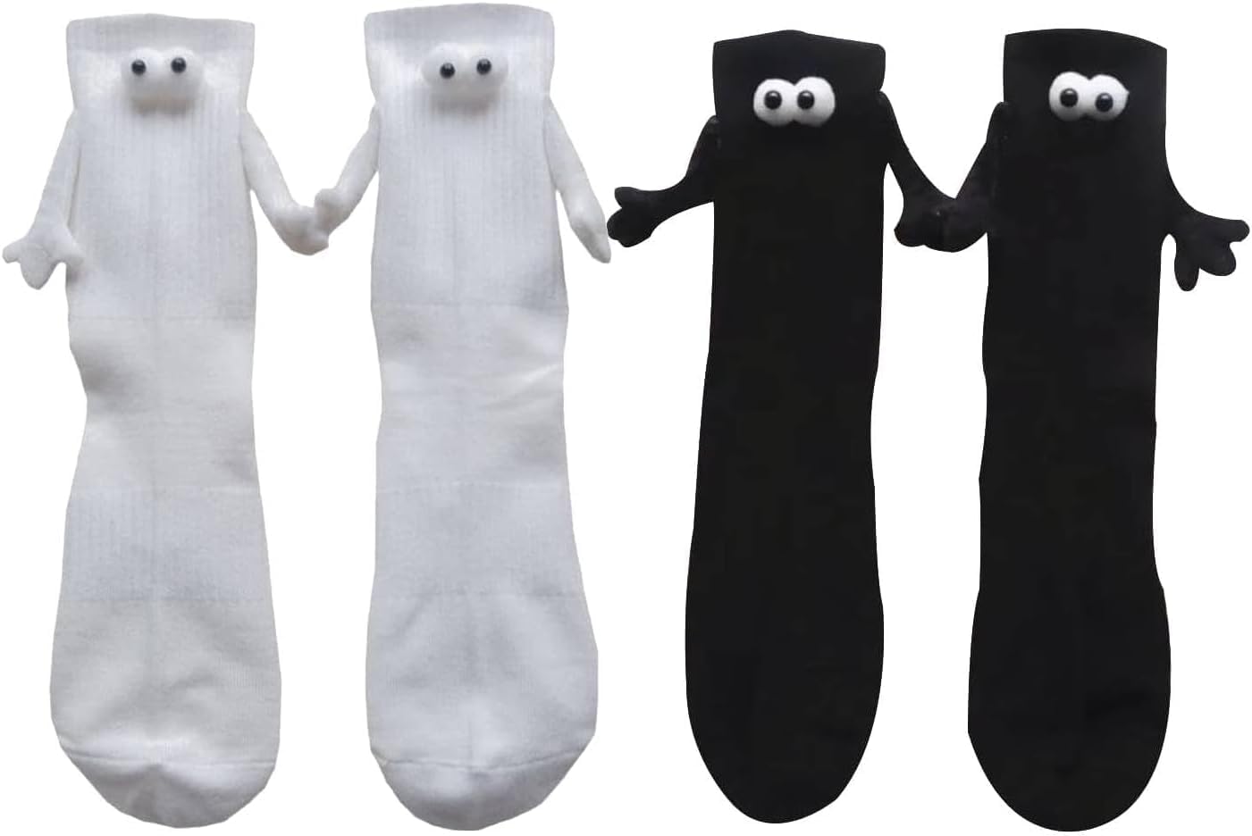 1 Pair Funny Magnetic Suction Cup 3D Doll Pair Of Socks Unisex Funny Couples Holding Hands Socks For Couple Medium Black+white