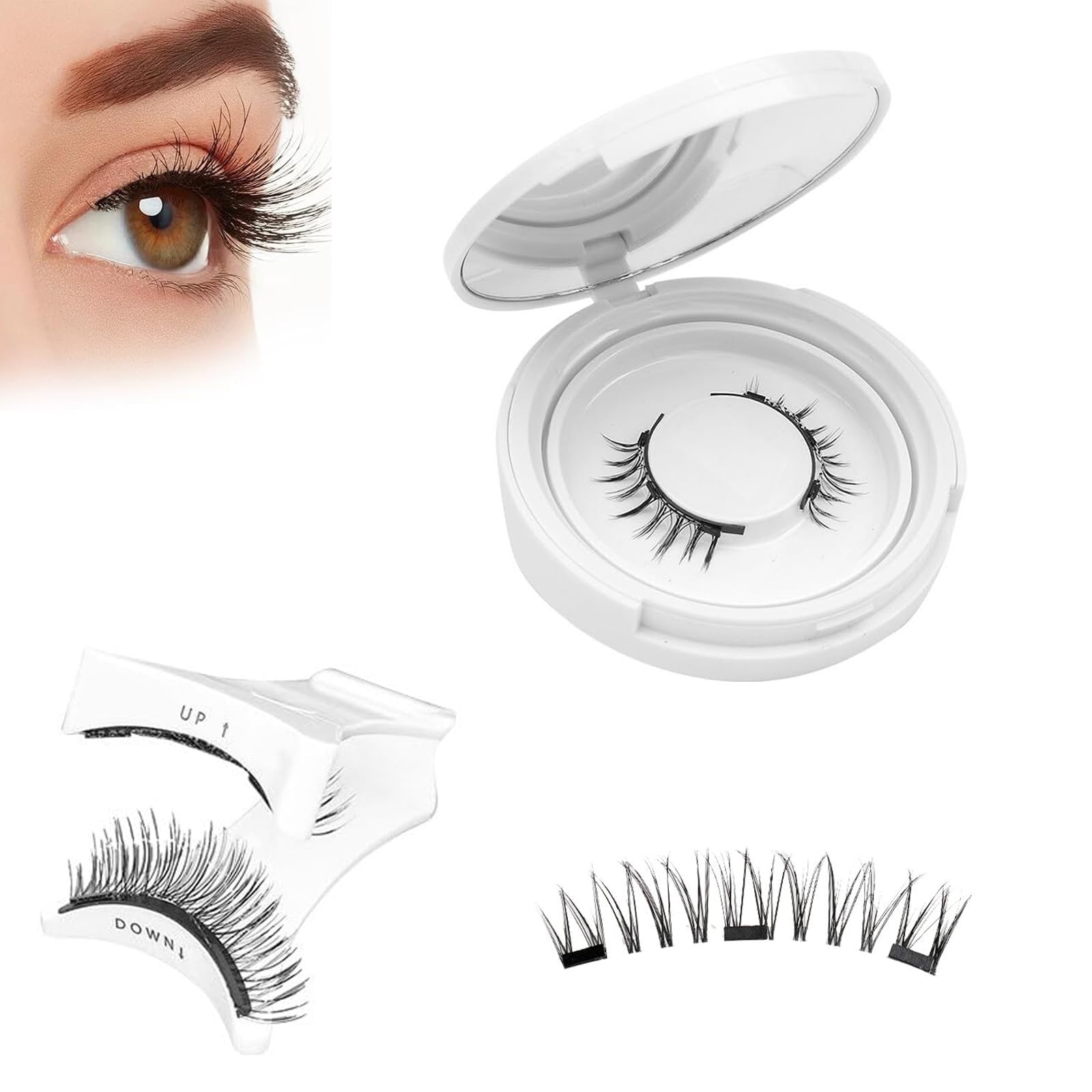 1 Pair Magnetic Eyelashes, Magnetic Lashes With Applicator, Magnetic Eyelashes With Applicator, Lashes Wispy Reusable Eyelashes, Easy to Wear and Remove for All-Day Comfort ?Magnetic Eyelashes with Powerful Magnet?: New magnetic lashes are equipped with the latest small magnets, which are light and more invisible, with stronger magnetic attraction, magnetic false lash can fit your eyes perfectly, last long and do not fall off. ?Comfortable to Wear?: Upgraded magnetic false eyelashes are softer and lighter. Clear band of magnetic lashes are only 0.15mm, super slim and flexible. 3 pairs of tiny magnets are only 0.001oz, super lightweight, ensuring your lash extensions comfortable on any occasion. ?Reusable Magnetic Lashes for Sustainable Beauty?: Our Magnetic Eyelashes are not only easy to apply but also reusable, offering an eco-friendly alternative to traditional false lashes. Enjoy the convenience and sustainability of lashes that can be worn multiple times. They can be easily taken off without remover, preserving the health of your natural lashes and the skin around your eyes. ?Magnet lash wearing principle?: Magnetic lashes are worn by placing 2 natural lash strips with magnets on the bands at the up and down of your own lashes and then attracting them to each other by the magnets on the bands. This process no longer involves lash glue but requires your own lashes to act as a foundation for the magnetic lashes. If you have really very few or no lashes, look no further than our self-adhesive lashes or strip lashes. ?No Glue Required, Say Goodbye to Messy Applications?: Say goodbye to the mess and hassle of glue with our Magnetic Eyelashes. The magnetic design ensures a secure fit without the need for sticky adhesives, making them perfect for quick touch-ups or full-day wear without any discomfort. DIRECTIONS To use these magnetic eyelashes, first ensure your natural lashes are clean and dry. Place two natural lash strips with magnets on the bands at the top and bottom of your own lashes, aligning them carefully. Allow the magnets to attract, securing the magnetic lashes in place. For removal, gently separate the magnetic lashes from your natural lashes, taking care not to damage your natural lashes or the magnetic lashes. SAFETY WARNING 1 See more?No Glue Required, Say Goodbye to Messy Applications?: Say goodbye to the mess and hassle of glue with our Magnetic Eyelashes. The magnetic design ensures a secure fit without the need for sticky adhesives, making them perfect for quick touch-ups or full-day wear without any discomfort. ?Magnet lash wearing principle?: Magnetic lashes are worn by placing 2 natural lash strips with magnets on the bands at the up and down of your own lashes and then attracting them to each other by the magnets on the bands. This process no longer involves lash glue but requires your own lashes to act as a foundation for the magnetic lashes. If you have really very few or no lashes, look no further than our self-adhesive lashes or strip lashes. ?Reusable Magnetic Lashes for Sustainable Beauty?: Our Magnetic Eyelashes are not only easy to apply but also reusable, offering an eco-friendly alternative to traditional false lashes. Enjoy the convenience and sustainability of lashes that can be worn multiple times. They can be easily taken off without remover, preserving the health of your natural lashes and the skin around your eyes. ?Comfortable to Wear?: Upgraded magnetic false eyelashes are softer and lighter. Clear band of magnetic lashes are only 0.15mm, super slim and flexible. 3 pairs of tiny magnets are only 0.001oz, super lightweight, ensuring your lash extensions comfortable on any occasion. ?Magnetic Eyelashes with Powerful Magnet?: New magnetic lashes are equipped with the latest small magnets, which are light and more invisible, with stronger magnetic attraction, magnetic false lash can fit your eyes perfectly, last long and do not fall off.