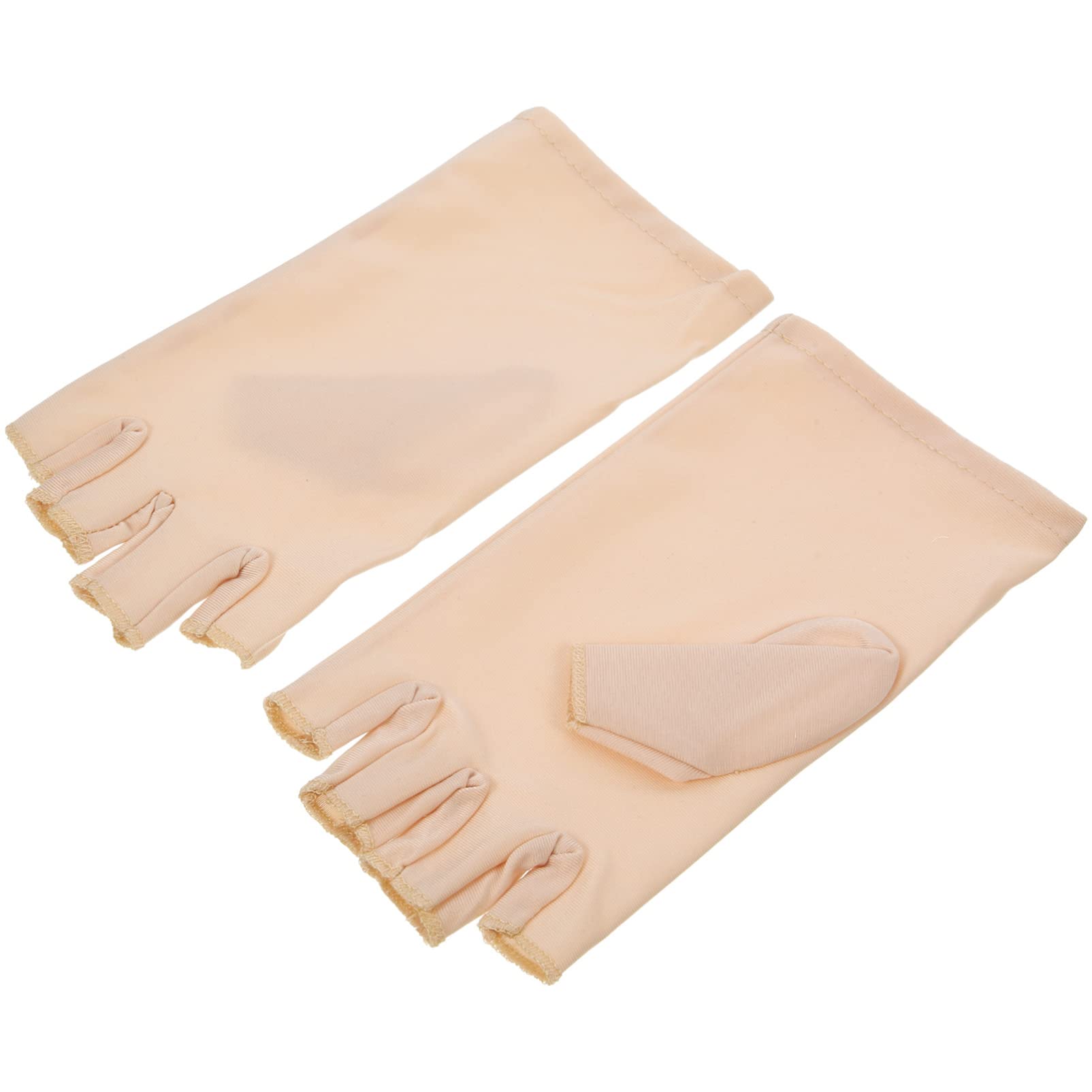 1 Pair nail gloves nail lamp UV fingerless gloves for manicures nail art protective gloves nail light LED gloves manicure gloves UV protection protector touch screen Miss spandex Beige