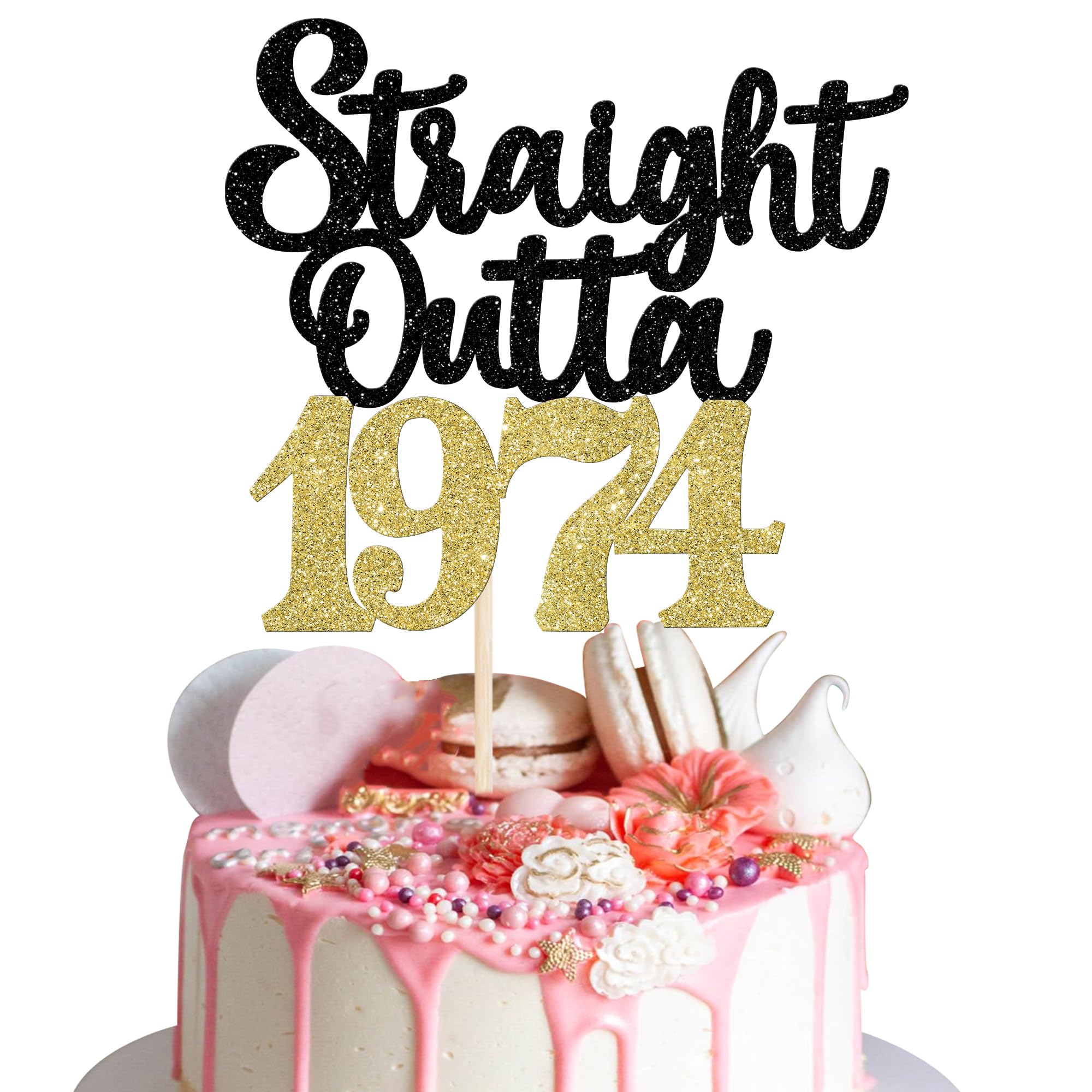 Material and use: The cake topper is made of high-quality paper cardboard, which is thick, lightweight, non-toxic and not easy to break. They are perfect for straight outta 1974 theme party, awesome since 1974 theme party, 50th birthday theme party, 50th Wedding anniversary theme party, 50th Retirement themed party cake decoration supplies that make the cake look tastier and attractive. Package and size: Package contains 1 cake topper. The size is 5.6 x 9.3 inches (with stick) Important note: The cake toppers have a pointed end, please keep them away from children when using them. These cake toppers are for decoration purposes only, not edible and must not be placed in the oven or used for baking. Due to the light and screen difference, the item's color may be slightly different from the pictures. Money back Our products are refund-protected. You can request 100% refund of the purchase price if you receive the product with defects. If you have any question, please feel free to contact us, we will do our best to solve the problem within 24 hours. SYKYCTCY is the own brand of our factory registered on . We focus on various theme party decoration supplies. Your satisfaction is our top priorityTIPS: Our highest priority is your satisfaction. If you are not absolutely thrilled with the product, we will give you a full refund! These cupcake toppers are not edible and intended for decoration only, please do not use in oven or microwave. APPLICATION: Perfect decoration for cakes, biscuits, cakes, fruits, brownies, ice cream and more, especially suit on vintage 1974 theme party, legend since 1974 theme party, 50th birthday theme party, 50th birthday theme party, 50th. Size: the size is W 5.6 inches x H 9.3 inches / W 14.2 cm x H 23.5 cm (with stick). Package: contains 1 cake topper, 1 piece / opp bag + card, the cake topper is pre-assembled, you can use it directly when you get it. Material: our cake topper is made of high quality single-sided glitter thick cardboard and food grade bamboo stick, it is non-toxic, odourless and not easy to break, which makes them safe and reliable.