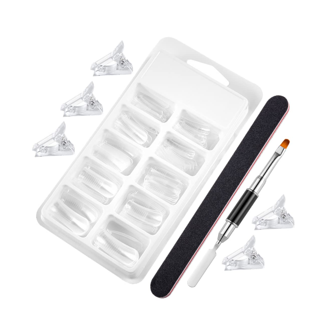 Package List 5 x crystal clips 1 x box of extended nail mold 1 x double-head crystal pen 1 x polishing strip Characteristics - Material: Plastic Nail Mold Tool Set. - Color: As Shown clear acrylic nail tips. - Packing size: About 20x13x3cm/7.87x5.12x1.18inch Manicure Extending Nails Set. - Size: About 17.80X1.20X1.00cm/7.00X0.47X0.39inch Manicure Extending Nails. - Easily allowing you to create a salon-class effect at home, making your nail art go beyond other nail art pieces nail set. - These tools are made of , sturdy enough, and reusable, serving life Manicure Art Supplies. - Simple and convenient to use, can get a nail art design in a short time, use them at anytime nail buffing. - Fine workmanship, good details, very special and practical, for DIY nail art Practical Manicure Art Molds. - Can be sent to your dear family members or close friends as a nail extension kit. - This set includes 5pcs crystal clips+one box of extended nail mold+1pc double-head crystal pen and 1pc polishing strip Manicure Extension Stencils Set. Goods Description Manicure Extension Stencils Set It is very funny to DIY nail art with your dear family or friends when family gathering, enjoy your own unique nails and good time.False Nail Tips This set of tools is relatively practical, delicate and creative, making you look more elegant.manicure This product is a manicure extension nail mold and tool kit