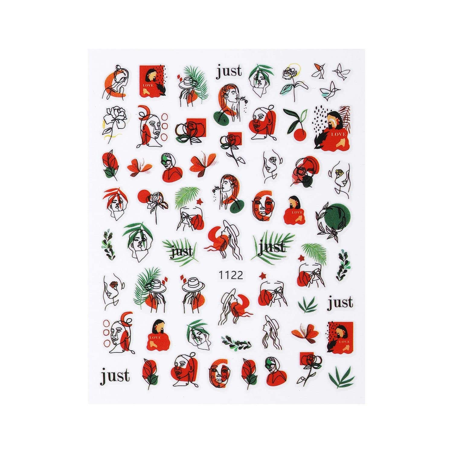 1 Sheet Fashion Decals Graffiti Pattern DIY Nail Art Decoration Slider Manicure Tool Geometric People Face Nail Sticker(1122) Style1122
