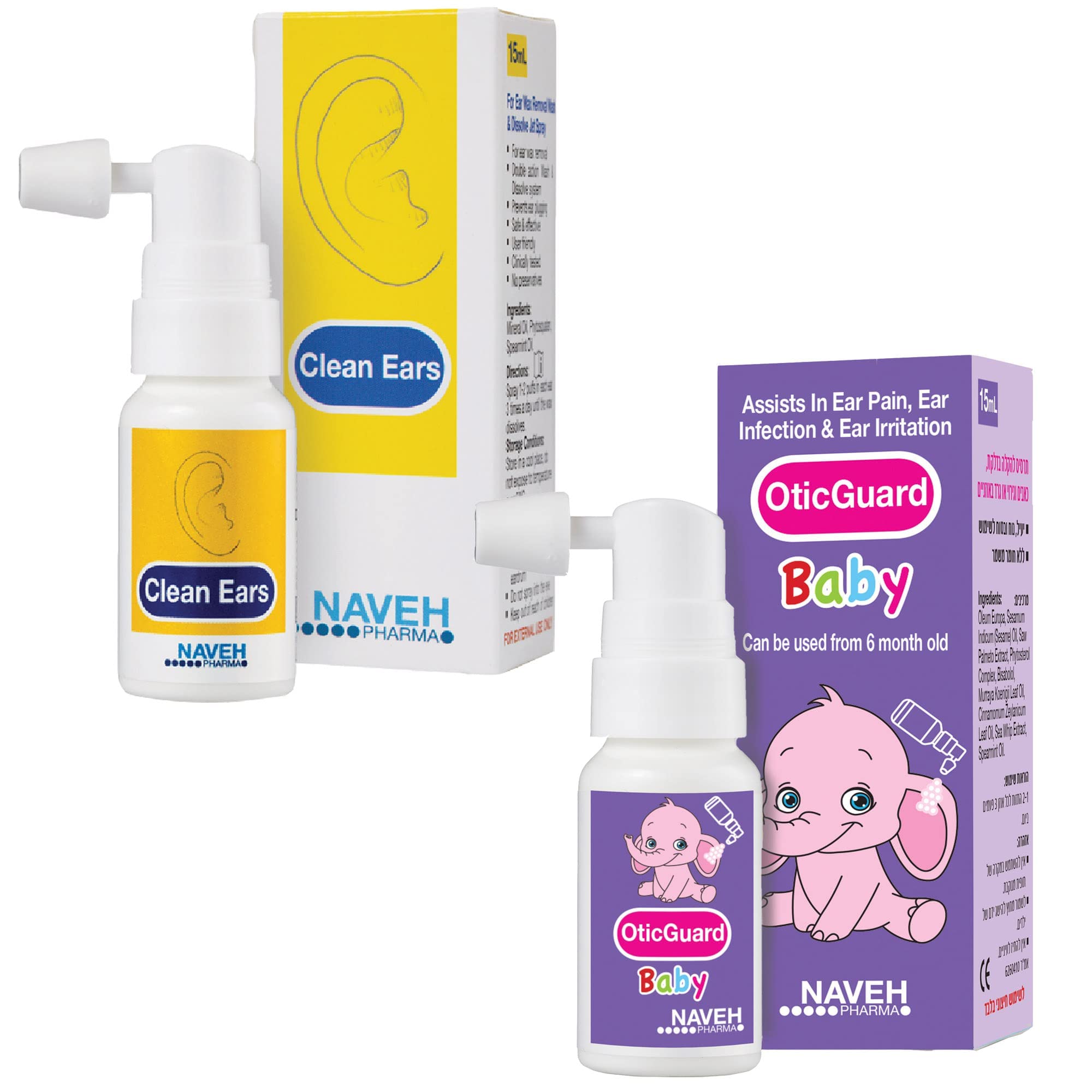 1 Unit Naveh Pharma CleanEars Earwax Removal Spray 0.5 Fl Oz + 1 Unit of NAVEH PHARMA Otic Guard Baby Ear Infection Spray 1 Fl Oz