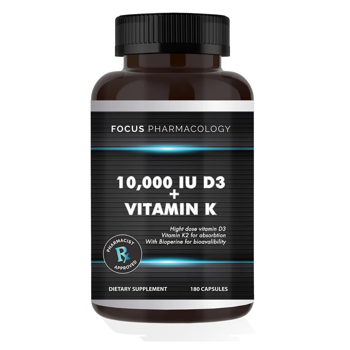 10 000 IU Vitamin D3 w/Vitamin K3-180 Capsules 180 Count (Pack of 1)