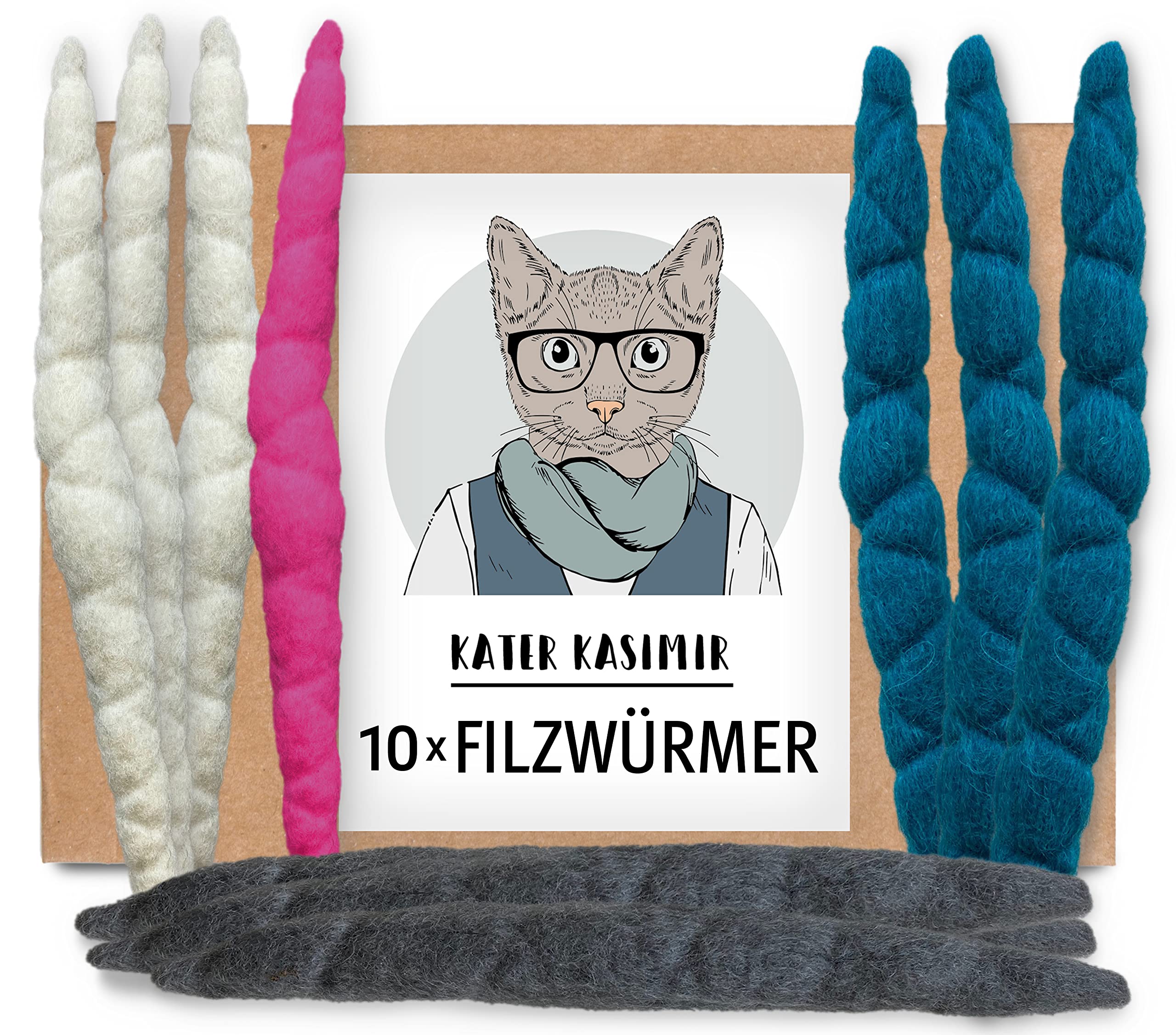 10 handgerollte Filzwürmchen aus 100 Schurwolle. In Deutschland mit Liebe gefertigtes nachhaltiges Katzenspielzeug aus regionalem Naturmaterial. 10 Würmchen