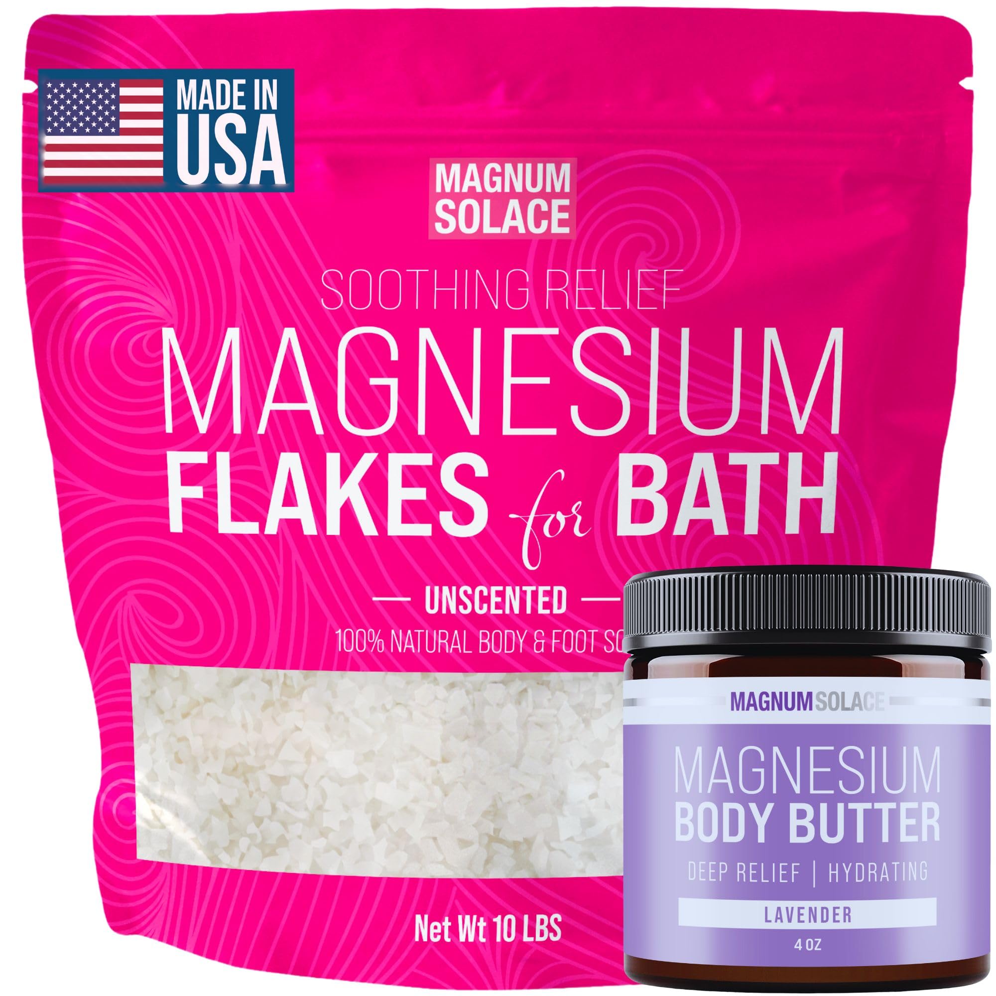10 LBS Magnesium Flakes for Bath (Unscented) with Magnesium Body Butter - Nighttime Routine Bundle.