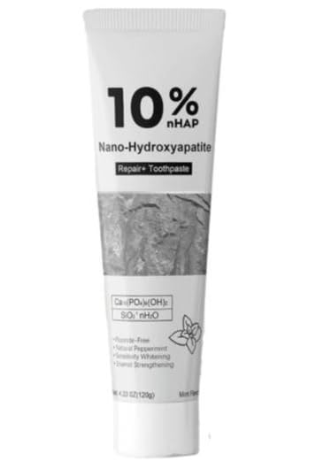 CONVENIENT 2-PACK SIZE: Includes two 4.23 oz (120g) tubes of toothpaste in paste form, providing long-lasting supply for daily oral care and enamel protection. NATURAL PEPPERMINT FLAVOR: Refreshing mint flavor provides a pleasant brushing experience while the natural peppermint ingredients leave your mouth feeling clean and fresh after each use. ENAMEL STRENGTHENING AND SENSITIVITY RELIEF: Formulated to strengthen weakened enamel and reduce tooth sensitivity through remineralization, offering professional-grade oral care for adults with sensitive teeth. FLUORIDE-FREE ALTERNATIVE: This toothpaste uses nano-hydroxyapatite instead of fluoride to provide a gentle and effective alternative for oral health, making it ideal for those seeking fluoride-free dental care options. UPGRADED FORMULA WITH 10 NANO-HYDROXYAPATITE: Features an advanced repair toothpaste formula containing 10 nHAP, a natural mineral that helps remineralize and strengthen tooth enamel while providing gentle whitening benefits.