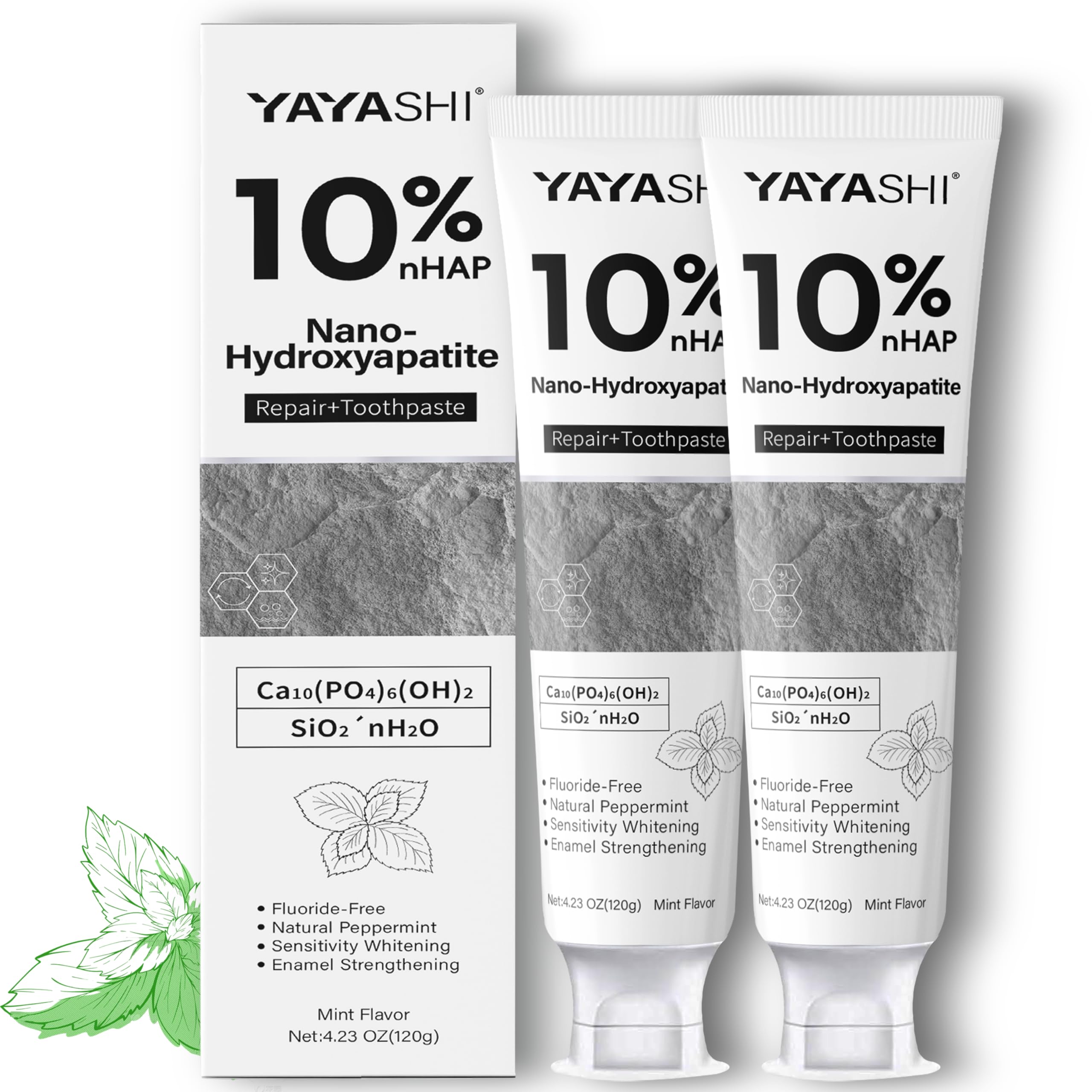 10% Nano Hydroxyapatite Toothpastes Fluoride-Free Toothpaste Gentle Mint Fresh Breath Daily Use for Oral Health 4.23oz (2pcs)