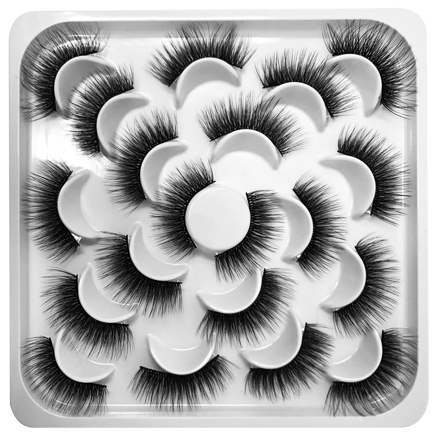fiber, so they are very soft and lightweight. You will look good and feel good wearing them. You’ll be happy with the glamor and convenience these eyelashes bring. EASY TO WEAR FALSE EYELASHES - are you worried about now knowing how to put on false eyelashes? No need to worry! False Eyelashes are easy to wear using glue. Follow the simple steps and show off your bigger and brighter eyes. GLAMOROUS EYELASHES THAT LOOK NATURAL - do you want longer lashes that still look natural? The False Eyelashes are 100% handmade that are as soft as the real ones. The high eyelash count gives you fuller and natural-looking lashes. FASHIONABLE AND STYLISH FALSE EYELASHES - are you looking for the perfect extension for your eyelashes? The 10-pack False Eyelashes with Glue is the one for you! Take advantage of 10 pairs of beautiful false eyelashes that will give your lashes the extra length, width, and curl.