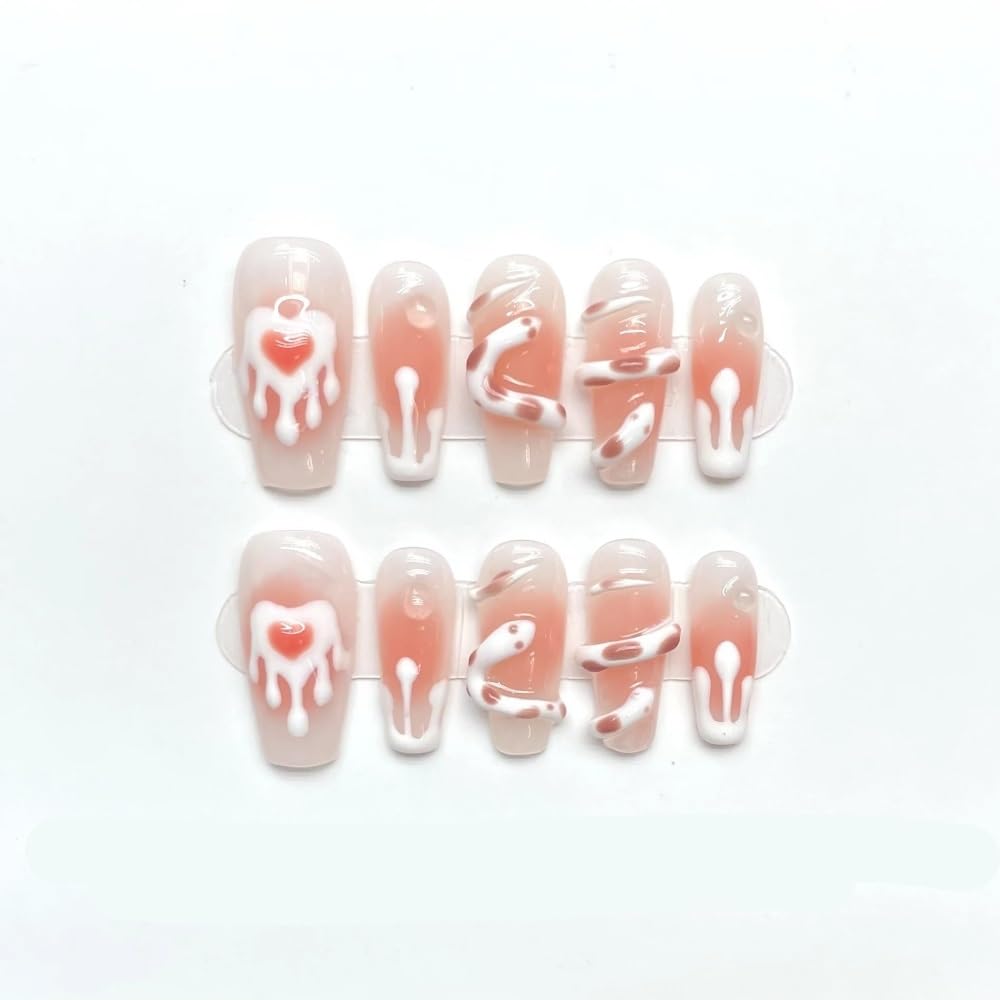 10 Piece Set of Handmade Wearable Nails Fake Nails Ballet Dance Long Press Nail Art Patches(Color:3 Size:S)