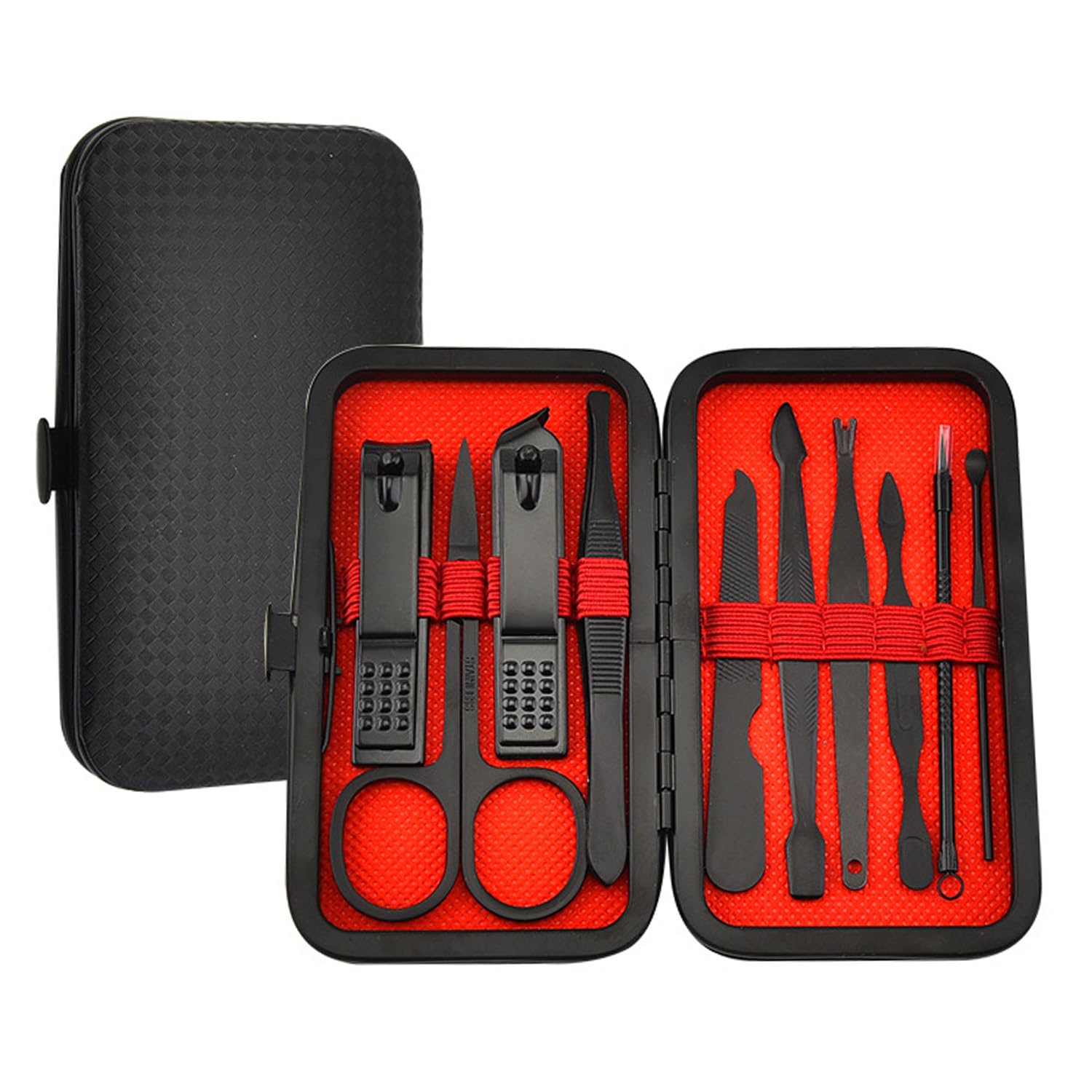 10-Piece Stainless Steel Nail Clipper Set Professional Manicure Set Stainless Steel Manicure Tools Stainless Steel Nail Care Tools Professional Nail Clipper Set (Black)