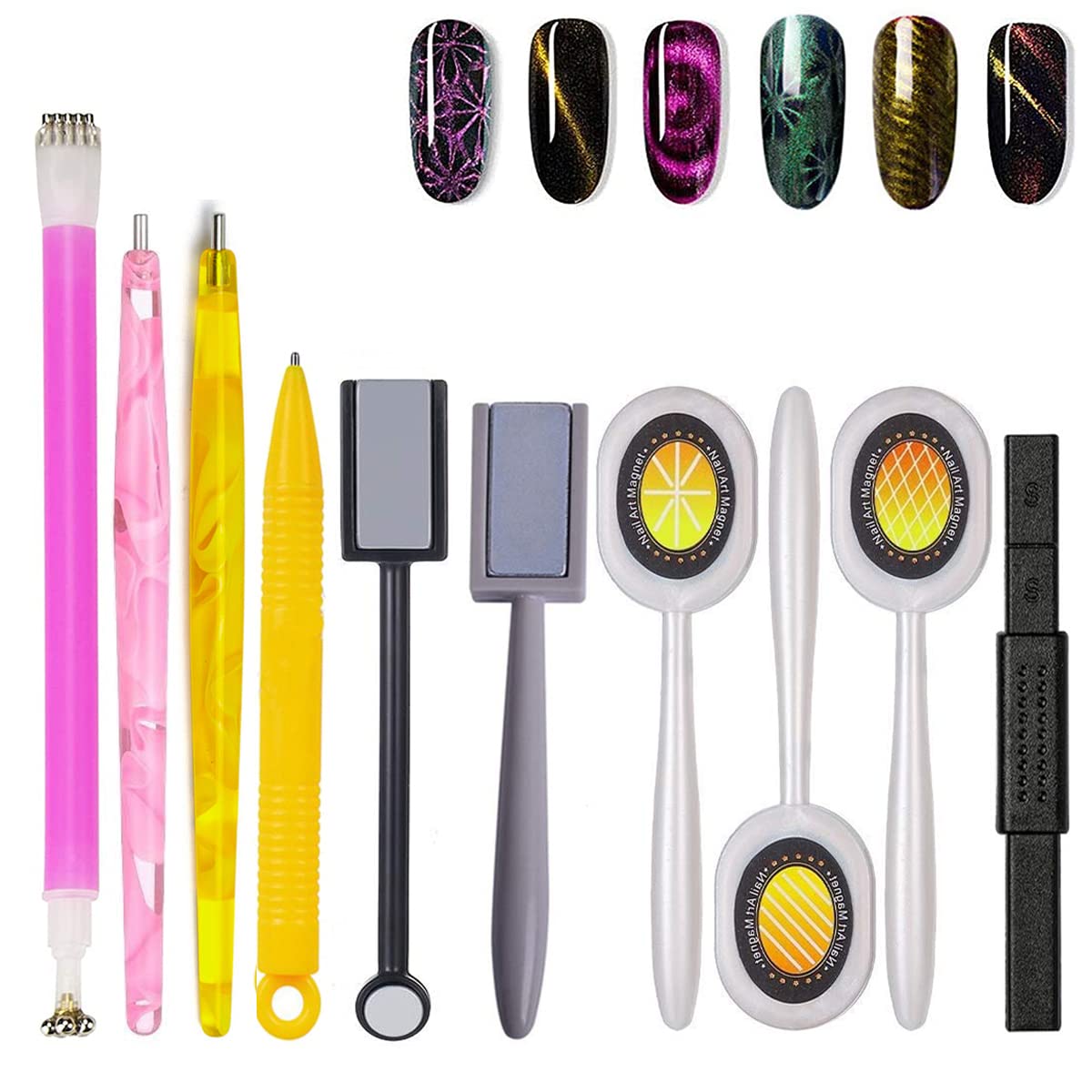 10 pieces different nail magnet tools, nail magnet pencil and strong magnetic pencil, for gel cats, polish Product features: Not only for nails, but also for cell phone covers, clothing, home decoration, nail studios and body art. Easy to handle and use, an ideal tool or gift for anyone who loves nail design. Included: 1 x magnetic pencil with cat's eyes flower. 3 x magnetic puncture for nails. 1 x double-head cat's eye magnet tab. 1 x magnetic tab with cat's eyes motif. 3 x cat eye magnet plate. 1 x black magnetic plate for cat eyes. Application: Step 1: First apply basic oil and have it hardened. Step 2: Apply a thick layer of cat eye gel nail polish, work quickly, the nail polish dries quickly and you have to put the magnetic tab on the damp nail polish as quickly as possible. Step 3: Place your finger under the magnetic plate for 20 seconds or use the pen to draw the desired pattern. Step 4: Apply the top coat and have it hardened.multiple effects: With the precision tip of the magnet you can easily attract the particles in the magnetic gel polish.Fast and efficient tool: achieve the CAT eye effect quickly and quickly.However, this tool must be used with Cat Eye Polish.Double-head magnet pencil: flower pattern and 5-part puncture design can form a special design for cat eye gel polishing agents.The package contains: 1 x flower cat eye magnetic pen, 3 x nail magnet dotting pens, 1 x double head cat eye magnetstick, 1 x single Head Cat Eye Magnettick, 3 x Cat Eye magnetic plate, 1 x Cat Eye Black magnetic plate.10PCs Differents Nail Magnet Tool Set: You can create many different effects and cool styles.Perfect for home use and the professional nail studio. 10 Stück verschiedene Nagel-Magnet-Werkzeuge, Nagelmagnetstift und starker Magnetstift, für Gel-Katzenaugen, Polnische Produktmerkmale: Nicht nur für Nägel, sondern auch für Handyhüllen, Kleidung, Heimdekoration, Nagelstudios und Körperkunst. Einfach zu handhaben und zu verwenden, ein ideales Werkzeug oder Geschenk für jeden, der Nageldesign liebt. Im Lieferumfang enthalten: 1 x Magnetstift mit Katzenaugen-Blume. 3 x magnetische Punktstifte für Nägel. 1 x Doppelkopf-Katzenaugen-Magnetstab. 1 x Magnetstab mit Katzenaugen-Motiv. 3 x Katzenaugen-Magnetplatte. 1 x schwarze Magnetplatte für Katzenaugen. Anwendung: Schritt 1: Zuerst Basisöl auftragen und aushärten lassen. Schritt 2: Tragen Sie eine dicke Schicht Katzenaugen-Gel-Nagellack auf, arbeiten Sie schnell, der Nagellack trocknet schnell und Sie müssen den Magnetstab so schnell wie möglich auf den feuchten Nagellack legen. Schritt 3: Legen Sie den Finger für 20 Sekunden unter die Magnetplatte oder verwenden Sie den Stift, um das gewünschte Muster zu zeichnen. Schritt 4: Tragen Sie den Überlack auf und lassen Sie ihn aushärten.Mehrfacher Effekt: Mit der Präzisionsspitze des Magneten können Sie die Partikel in der magnetischen Gelpolitur leicht anziehen. Schnelles und effizientes Tool: Einfach und schnell den Cat Eye-Effekt erzielen. Dieses Werkzeug muss jedoch mit Cat Eye Polish verwendet werden. Doppelkopf-Magnetstift: Blumenmuster und 5-teiliger Punktierentwurf, können speziellen Entwurf für Katzenauge-Gelpoliermittel bilden. Das Paket beinhaltet:1 x Blume Katze Auge magnetischer Stift, 3 x Nagel Magnet Dotting Stifte, 1 x Double Head Cat Eye Magnetstick, 1 x Single Head Cat Eye Magnetstick, 3 x Cat Eye Magnetplatte, 1 x Cat Eye Black Magnetplatte. 10Pcs Differents Nail Magnet Tool Set: Sie können viele verschiedene Effekte und coole Stile erstellen. Perfekt für den Heimgebrauch und das professionelle Nagelstudio.10 Stück Nagel Magnet Stick Tool Set, Mwoot Nail Art Werkzeug Magnetstift, Nagel-Magnet-Stift und starker Magnet-Stock-Punktierungsstifte für DIY 3D magnetisches Katzenauge UV gel Polnisch Nagel Kunst