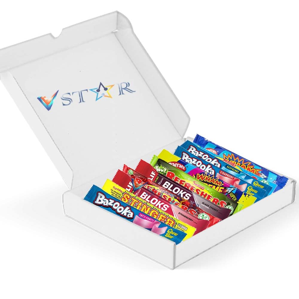 Perfect for Sharing Family & Friends. Bazooka Blue Raspberry Chew Bars 14g, Barratt Wham Extreme Bar 25g, Bazooka Strawberry Chew Bars 14g. Clif Bloks Energy Chews Black Cherry Flavour + Caffeine Bar 60g , Swizzels Refreshers Original Lemon Flavour Chew Bar 18g 20p PMP. Swizzels Refreshers Sour Apple Flavour Chew Bar 18g 20p PMP , Clif Bloks Energy Chews Strawberry Flavour + Caffeine Bar 60g. Bazooka Tutti Frutti Chew Bar 14g , Barratt Wham Original Chew Bar 16g, Swizzels Stinger Chew Bar 18g, Swizzels Refreshers Cherry Cola Flavour Chew Bar 18g 20p PMP. Ultimate Chew Bar Gift Selection not only satisfies your palate but also serves as a good gift option. 10 x Amazing Flavours Random Chew Bar Sweet Selection Box.