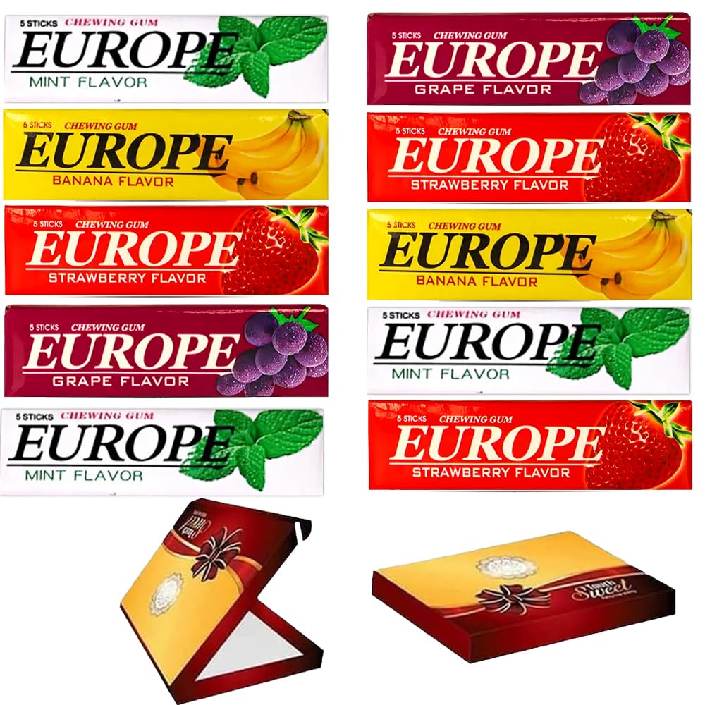 10 x Europe Mint Banana Grape Strawberry Chewing Gum Sticks 13g With Gift Box