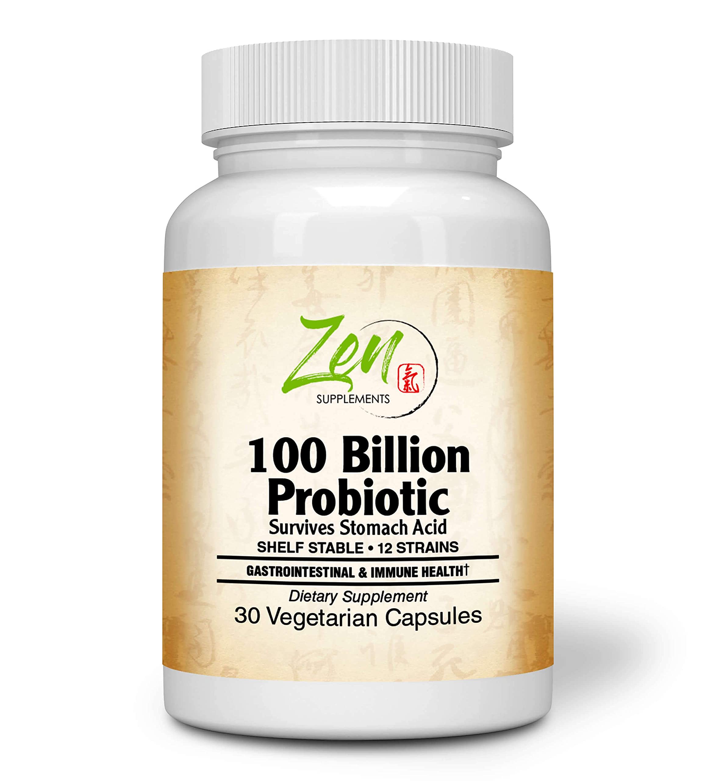 Zen Supplements - 100 Billion Probiotic - 100 Billion CFU with 12 Strains 30-Vegcaps - Sustained Release Technology, Resist Stomach Acid, Shelf Stable - Support for Healthy Digestion Intestinal Ecology Favorable Intestinal Flora