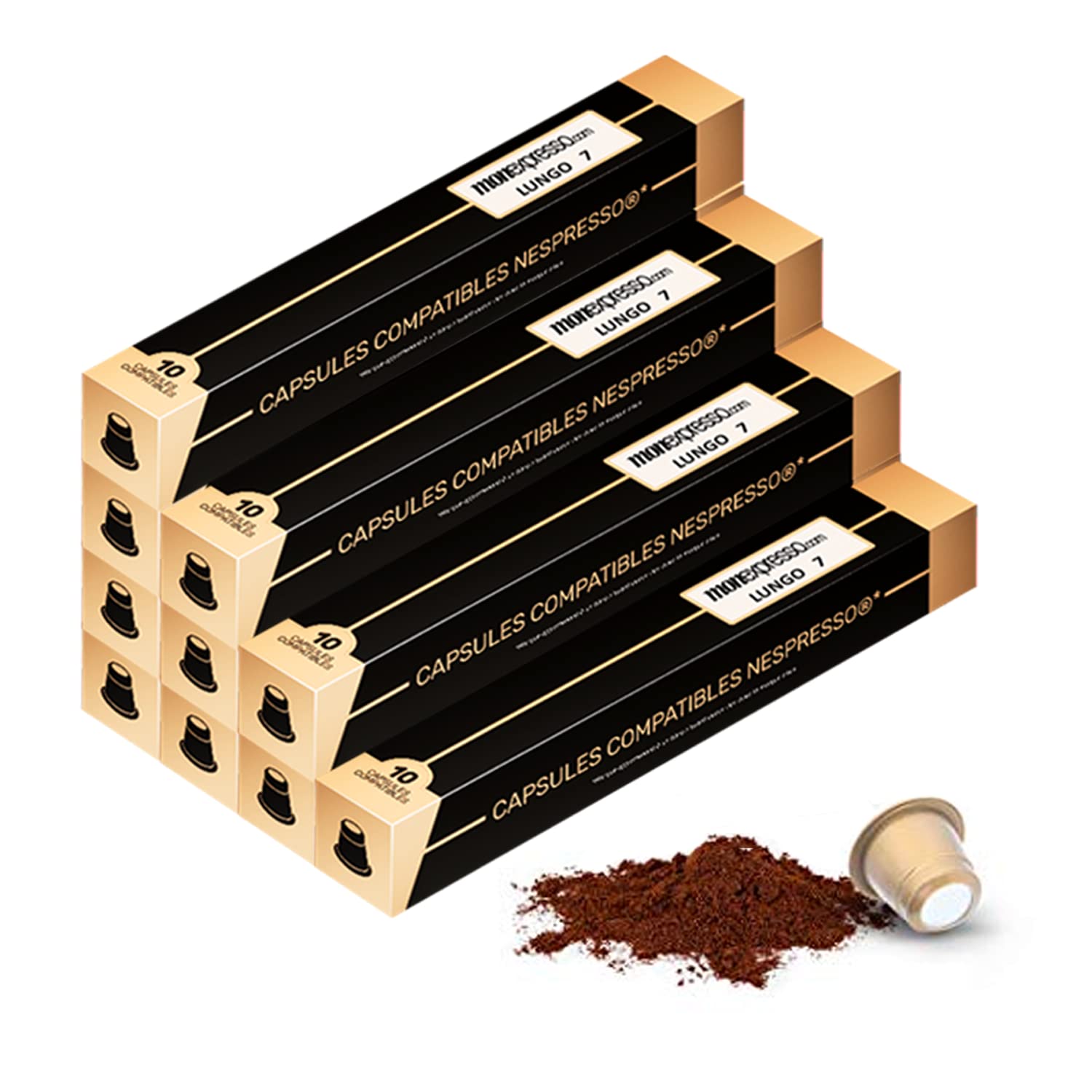 Perfect for breakfast. Coffee roasted and encapsulated in France. A full-bodied coffee, it will allow you to enjoy a balanced and velvety cup. Intensity 7. Comes in 10 tubes of 10 capsules. Capsules 100 airtight with no overwrap.? 100 SATISFIED OR YOUR MONEY BACK: Monexpresso is a French brand. In order to always satisfy you, we work with the same line of conduct: To help you discover exceptional coffees. Products grown and harvested with respect for nature and the people who work in their production. All our products are selected with ? and packaged in France. Listening to your expectations and desires. Do not hesitate to contact us for any questions. Enjoy your tasting. ? QUALITY COFFEE: Our team explores the most remote growing areas on earth. You will find only the best coffees in our assortments. We are constantly looking for superior quality and absolute taste. PACK: 100 Capsules (10 Packs of 10 Capsules) 100 Cups 100 Hermetic Capsules without Overwrap (better conservation) This capsule keeps the coffee as fresh as the day it was roasted. ORIGIN: The Pack contains 100 Capsules: 100 Lungo Capsules Intensity 7. ? NESPRESSO COMPATIBLE CAPSULES: 100 Capsules Lungo Artisanally roasted in France Compatible with Nespresso Machines. Parfait pour le petit déjeuner. Café torréfié et encapsulé en France. Un café corsé, il vous permettra de retrouver une tasse équilibrée et veloutée. Intensité 7. Livré en 10 tubes de 10 capsules. Capsules 100 hermétique sans suremballage.? 100 SATISFAIT OU REMBOURSÉ : Monexpresso est une marque Française. Afin de toujours vous satisfaire nous travaillons avec la même ligne de conduite: Vous faire découvrir des cafés exceptionnels. Des produits cultivés et récoltés dans le respect de la nature et des hommes qui travaillent à leur production. Tous nos produits sont sélectionnés avec ? et conditionnés en France. Être à l'écoute de vos attentes et envies. N'hésitez pas à nous contacter pour toutes vos questions Bonne dégustation. ? CAFE DE QUALITE : Notre équipe explore les zones de culture les plus reculées de la terre. Vous trouverez uniquement les meilleurs cafés dans nos assortiments. Nous sommes en permanence à la recherche de la qualité supérieure et du goût absolu. PAQUET : 100 Capsules (10 Paquets de 10 Capsules) 100 Tasses Capsules 100 Hermétique sans Suremballage (meilleur conservation) Cette capsule permet de garder le café aussi frais que le jour de sa torréfaction. PROVENANCE : Le Pack contient 100 Capsules : 100 Capsules Lungo Intensité 7. ? CAPSULES COMPATIBLES NESPRESSO : 100 Capsules Lungo Torréfié Artisanalement en France Compatible avec les Machines Nespresso.
