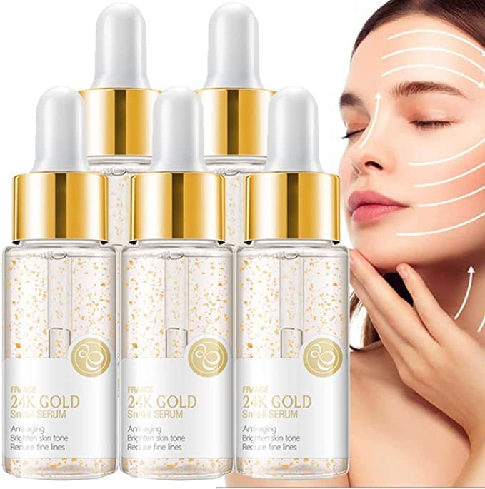 ?————————————Welcome to our shop———————————— ✓1. We provide you with a variety of trustworthy and high-quality products, and I hope you can buy your favorite products. ✓2. If you have any questions, we will reply you within 24 hours. ✓3. We try our best to ensure that you have a 100 satisfactory shopping experience! ?(100 Effective) 24k Gold Snail Serum - WZDYN Say Goodbye to Wrinkles Without Expensive Botox with 24K Gold Collagen Booster Serum?Features: ✓1. Wake up the skin, quickly penetrate into skin, replenish the moisture and nutrients needed by skin, 24k essence Natural way to increase your beauty Refined texture All levels hydration ✓2. Plant-based ingredients with safe formula, mild and no irritation, no side effects, You can stop your ageing By using this natural skin care. Restored elasticity, hydration and nourishment ✓3. Improve large pores and dull skin, repair damaged skin barrier, continuously deliver moisture ✓4. Effectively adjust water and oil balance, improve skin tone and enhance skin elasticity ✓5. Light and smooth texture, no sticky feeling, easy to be absorbed by skin ✓6.Say goodbye to wrinkles and loose skin,Reduce years of stress in the face,Light and smooth texture, no sticky feeling, easy to be absorbed by skin Effectively adjust water and oil balance, improve skin tone and enhance skin elasticity ?Specifications: ✓Net Content:15ml ✓Shelf Life: 3 Years ✓Item Type:Facial Serum ✓Suitable For: All Skin Types ✓Function: Anti Aging, Firming, Moisturizing ✓Main Ingredients: Snail Secretion Filtrate, Nicotinamide, Hyaluronic Acid, Red Ginseng Extract ?Package includes: ✓1 2 3 4 5PCS 24k Gold Snail Serum?For All Skin Types?: 24K gold serum for face with natural ingredients can effectively reduce the stimulation of sensitive skin, suitable for the anti-aging needs of women of different ages. A refreshing effect that quickly blends the essence into the skin. ?Anti-aging?: After the gold foil is fully absorbed, the skin is deeply moisturized. The unique nourishing and moisturizing ingredients can effectively improve dry, rough and dull skin, leaving the skin soft like pearls. The organic moisturizer soothes dryness, irritates the skin while helping to balance oily skin tones. ?Reduces Dark Spots Wrinkles?: Collagen Booster Serum promote cell metabolism and regeneration, accelerate collagen synthesis and growth,Improve large pores and dull skin, repair damaged skin barrier, continuously deliver moisture. ?Safe Formul?: Plant-based ingredients with safe formula, mild and no irritation, no side effects, You can stop your ageing By using this natural skin care. ?24K Gold Collagen Booster Serum?: 24k Gold Snail Serum acts as a natural antioxidant to protect skin from radiation, promote cell metabolism and regeneration, Effectively adjust water and oil balance, improve skin tone and enhance skin elasticity,Restored elasticity, hydration and nourishment.