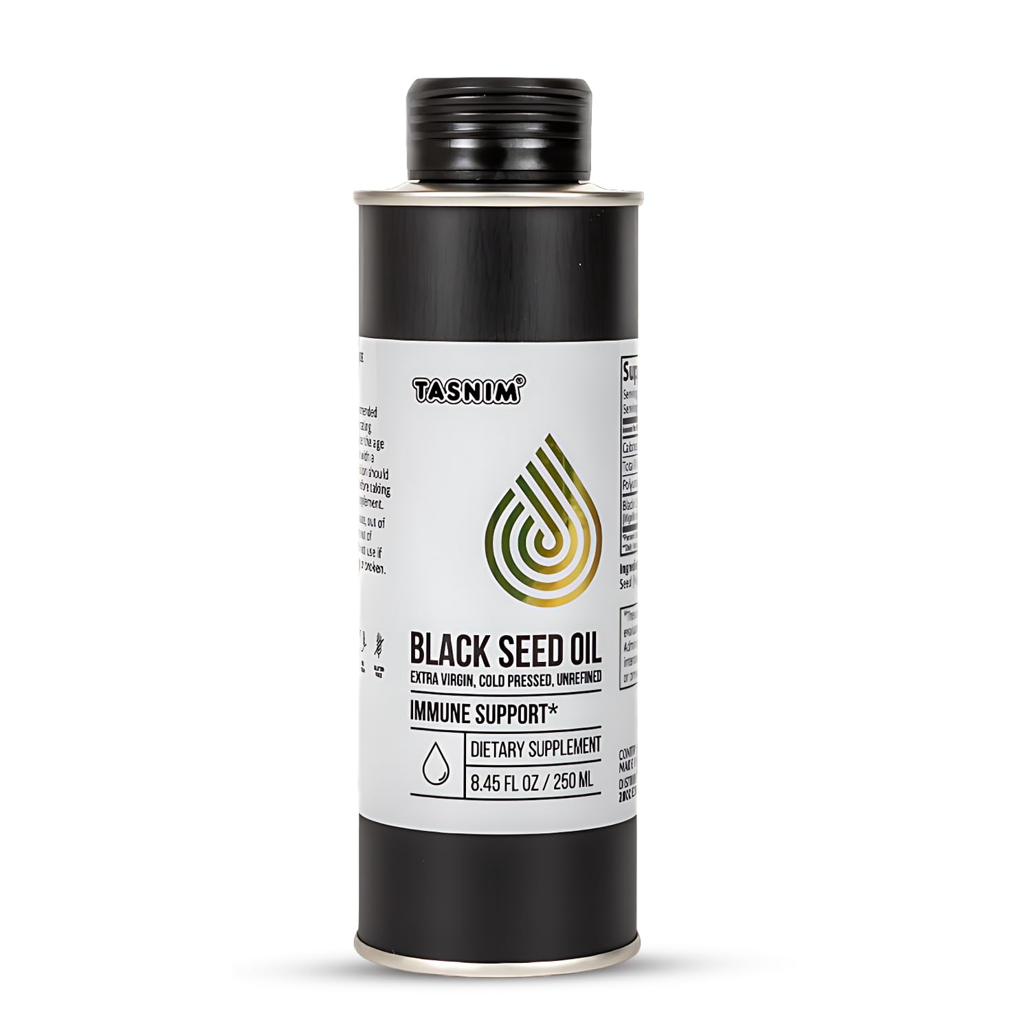 : Tasnim's nigella sativa blackseed oil is a great topical option in addition to being a dietary supplement. It is vegan, gluten-free, and halal. Experience the skin and hair benefits with our , cold pressed black seed oil !. ? : Our liquid dietary supplement, black seed oil cold pressed, is extracted from the premium Ethiopian black seeds, known for its richness and potency. Our commitment to health and well-being is evident in every drop of our nigella sativa oil. :Tasnim is pleased to provide Ethiopian black seed oil cold pressed that have an astounding 5.7 - 21 Thymoquinone (TQ) content, varying by seed harvest. An exceptional black cumin oil that may improve your health that exceeds industry standards. : With Tasnim, experience the purity of nature. Our black cumin seed oil supports the immune system in addition to heart health, glowing skin and hair. This unrefined black seed oil also helps with slimming down and offers strong antioxidant defense!. : Our Ethiopian Black SeedOil is rich in Thymoquinone which improves and regulates immune function. Extracted as cold press black seed oil for better quality and resistance against health issues while supporting general immune health.
