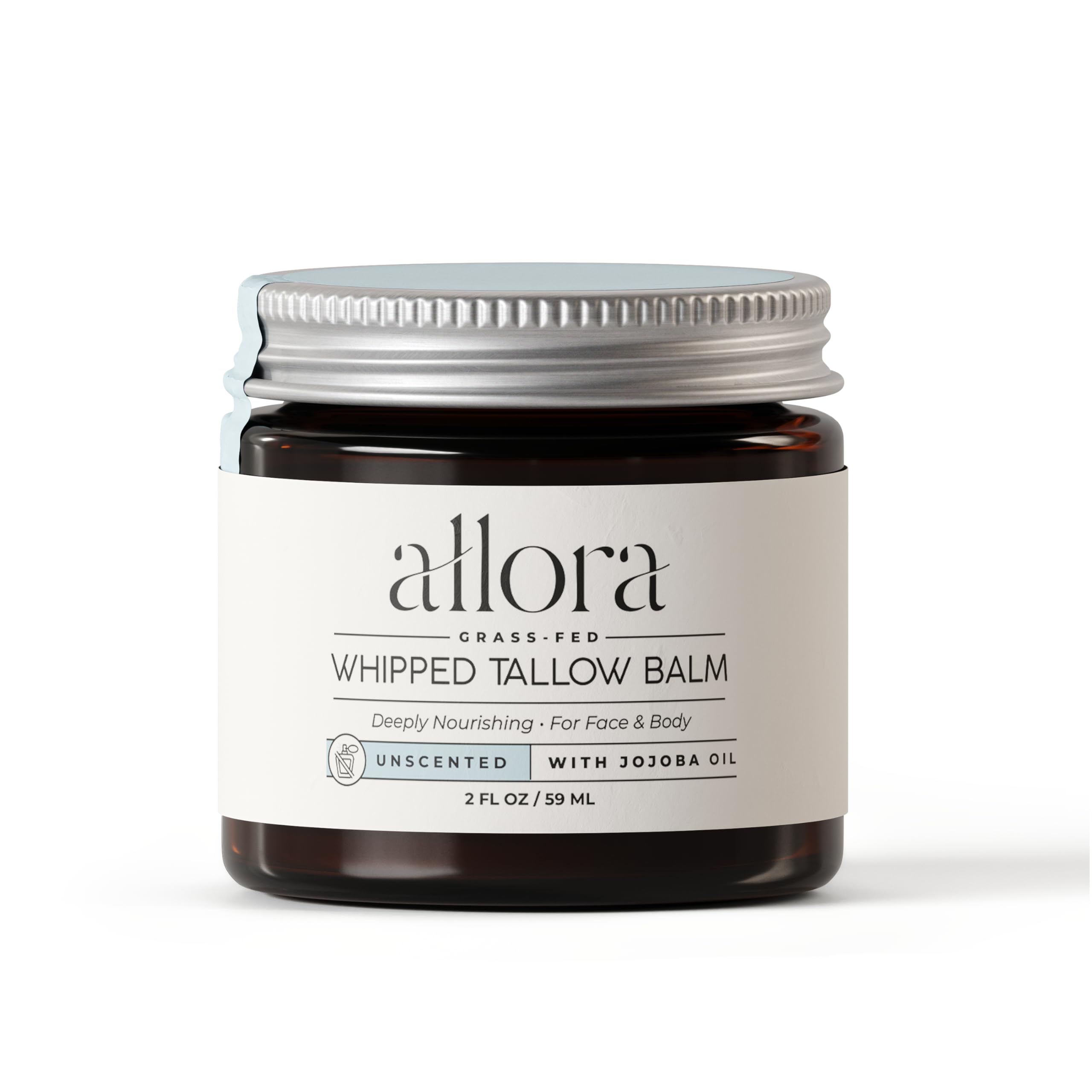 Allora brings you the purest form of nourishment for your skin — rendered from 100 grass-fed beef tallow, rich in vitamins A, D, E, and K. Our formulations echo the balance of nature and biology, offering a luxurious moisturizer that mirrors the skin's own oils. No fillers, no synthetics — just deeply restorative hydration the way nature intended. Every jar of Allora is slow-crafted in small batches and poured into glass, preserving the integrity of its nutrient-dense fats. The result is a clean, subtle balm that melts effortlessly into your skin — restoring elasticity, calming irritation, and leaving behind a smooth, radiant finish that feels alive.