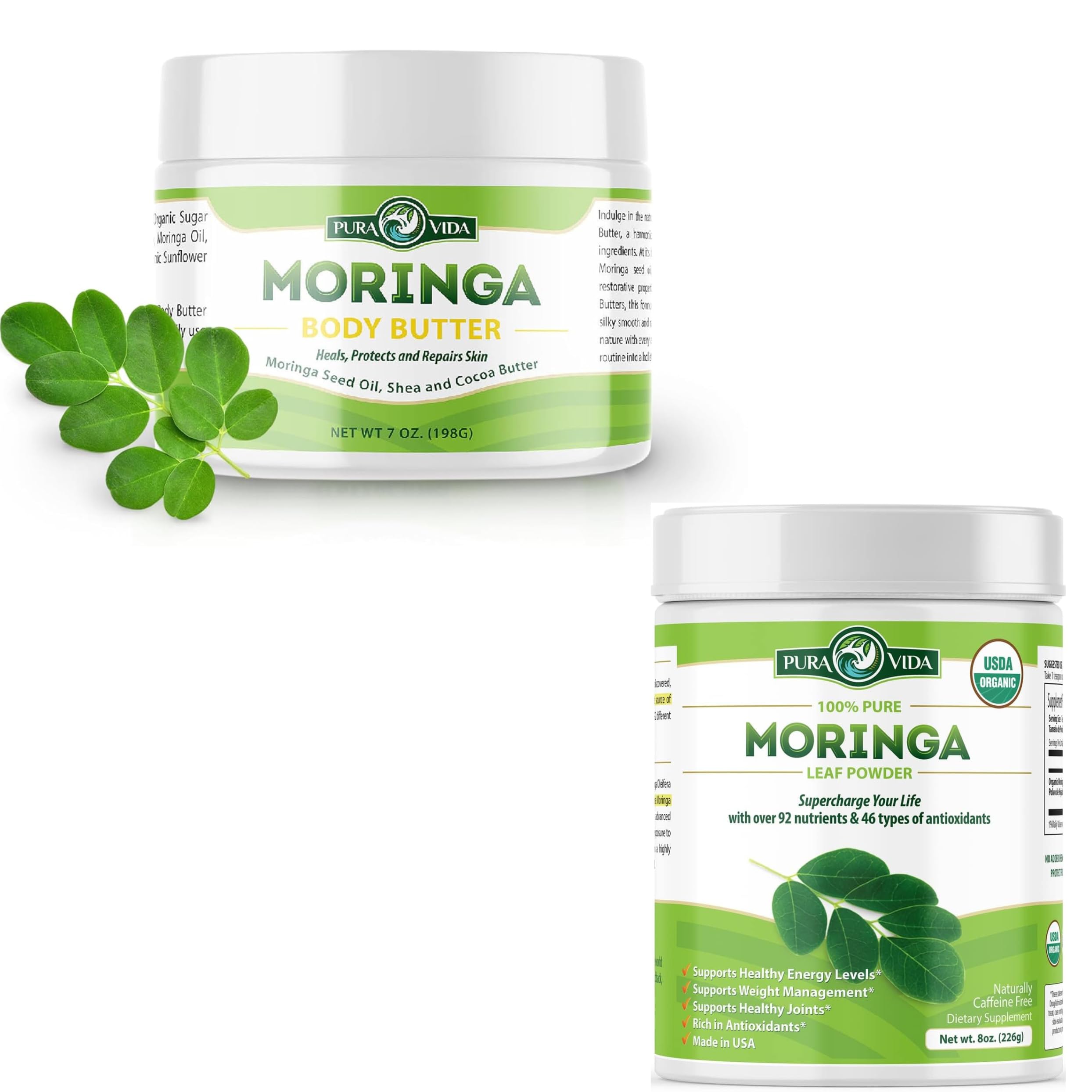 100% Natural Ingredients Moringa Oil Body Butter for Dry Skin with Vitamin A C And Moringa Powder Organic Single Origin - Premium 100% Leaf Powder USDA Organic