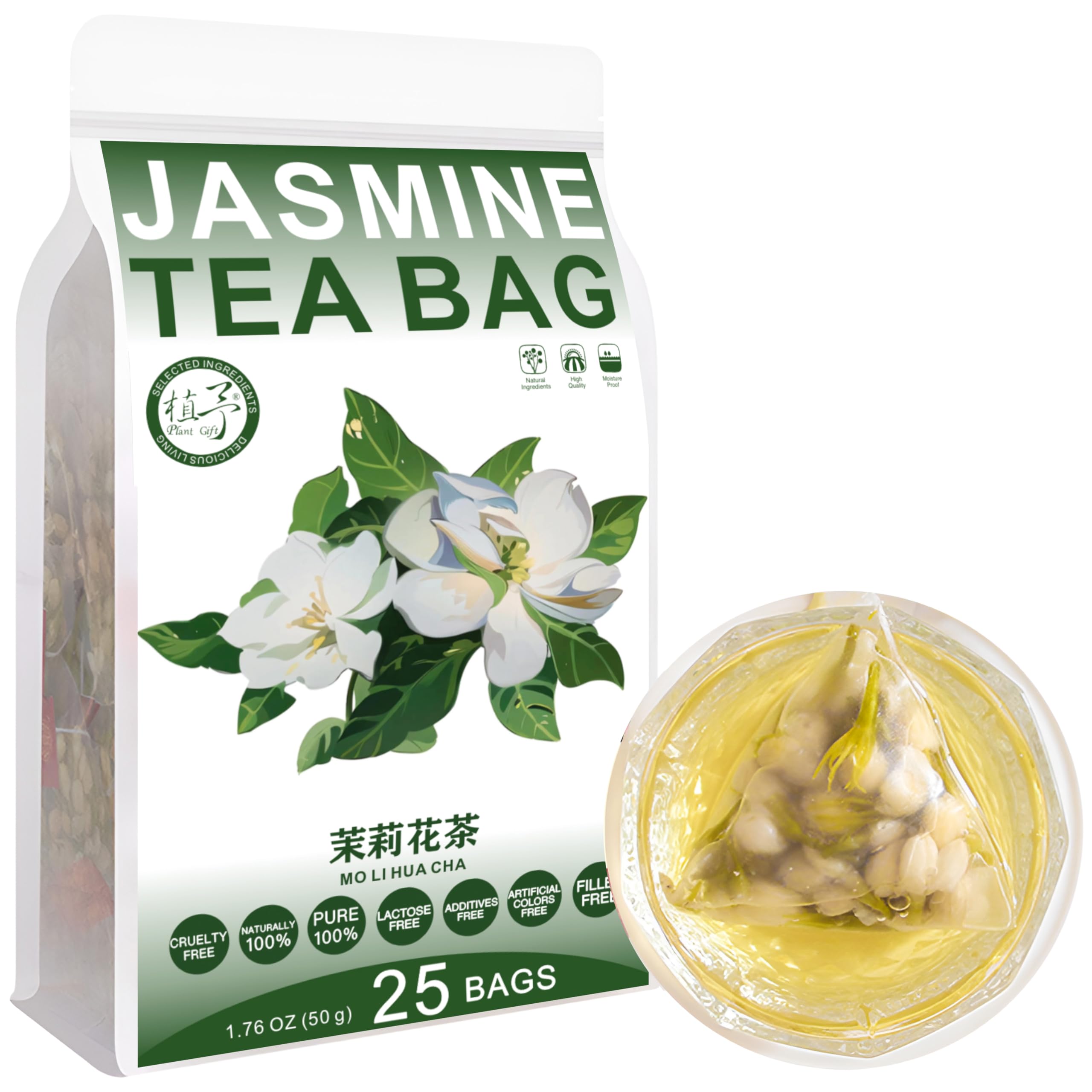 How to serve: Take the tea bag and place it in a cup, pour in hot water (over 80 C 176 F), and let it steep for 3 to 5 minutes. You can also add ice or refrigerate for a more refreshing and flavorful taste. Use jars that can be resealed to preserve the freshness and flavor of the tea. Each tea bag weighs 2 grams, for a total weight of 1.76 oz 50 grams, and you get 25 tea bags. The code printed on the box is the production date, and the shelf life is 18 months. You can choose to enjoy a deliciously nourishing herbal tea at home or take it to the office or on trips. It's also the perfect gift for family, friends, and colleagues during the holidays. This tea is suitable for everyone. During busy work hours, when you feel lethargic and lacking energy, drink a cup of jasmine tea, whose aroma will invigorate you. In hot weather, it's easy to feel irritable. A cup of iced jasmine tea is perfect for dispelling those unpleasant feelings. Individually wrapped in tea bags, one at a time, these high-quality, pure natural tea bags allow you to enjoy the natural taste. Jasmine tea has a fresh floral fragrance, a clear and bright color after brewing, a pale yellow hue, a fresh taste, a rich aroma, a mellow tea scent, a pleasant, fresh, and sweet floral fragrance, and a long finish. You can also add honey or icing sugar to your liking. "Jasmine Tea Bag," non-GMO, caffeine-free, sulfur-free, and gluten-free. This tea is made from purely natural ingredients and contains no additives. Rigorously selected jasmine buds, uniform in size, natural color, with no additives, no pigments, and no sulfurous fumes.
