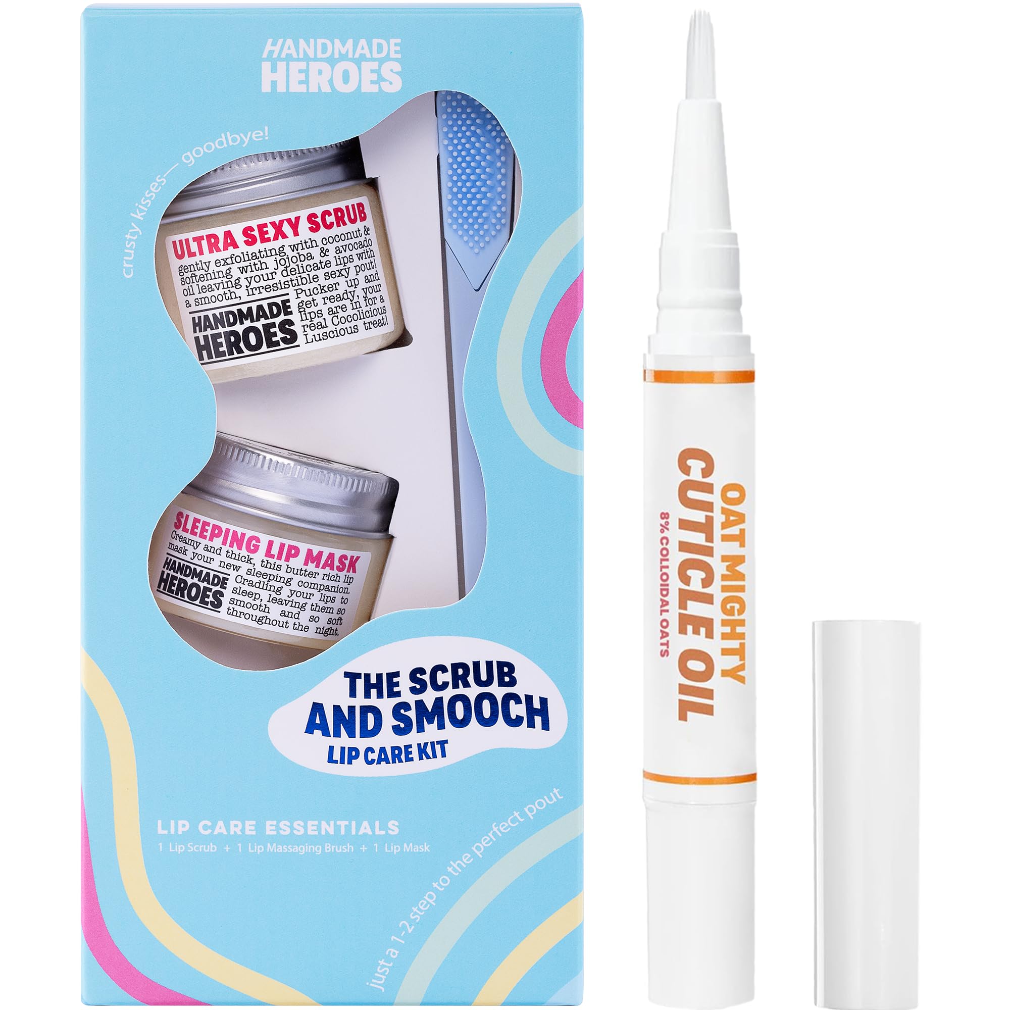 CRUELTY FREE VEGAN: discover the difference of our clean, natural skin care. Perfect on the go selfcare. Revitalize skin anytime, anywhere. Travel friendly essentials. STRENGTHENS CUTICLES: made with quality, vitamin rich cold pressed oils. Repair peeling cracked nails, hangnails, dry cuticles while maintaining cuticle health and rapid nail growth. SMOOTH SOFT LIPS starts with The Scrub and Smooch Kit. Original Lip scrub and mask duo that gently buffs away and moisturizes dry flaky lips, revealing softer luscious lips. Perfect for normal, dry and sensitive skin. 100 CLEAN NATURAL INGREDIENTS: We're passionate about what we don't include No Parabens, No Sulphates, No Phthalates.