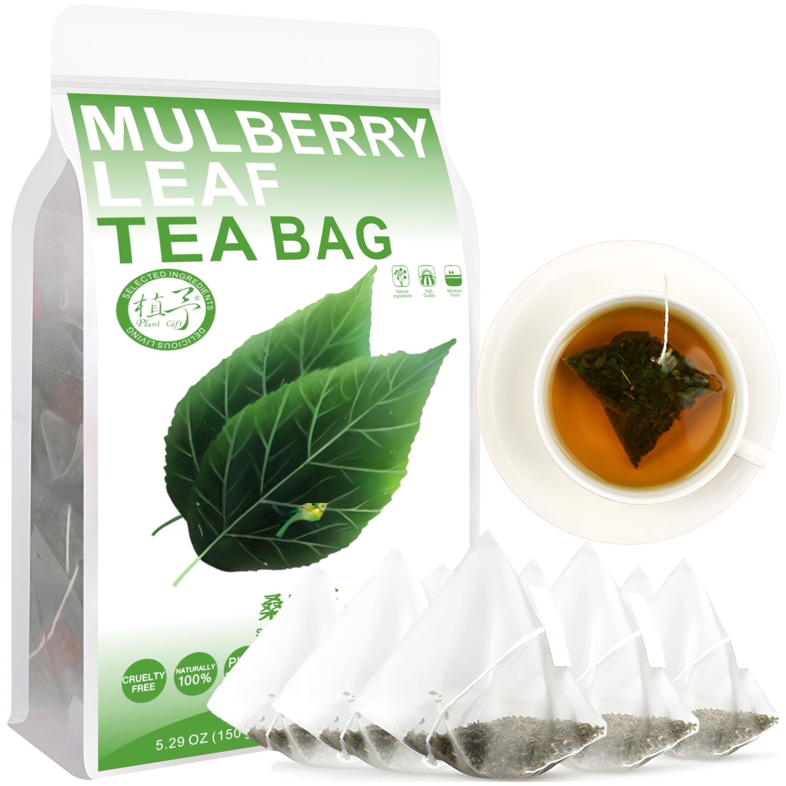 "Mulberry Leaf Tea Bag", Non-GMO, caffeine-free, sulfur-free and gluten-free.This Tea Is Made From Pure Natural Ingredients Without Any Additives. The fresh mulberry leaves are selected as ingredients. After hand-picked and natural drying, they remove the strong and bitter taste in mulberry leaves, but retain the mellow taste and nutrition of mulberry leaf. Independent small bag packaging, one pack at a time, high-quality pure natural tea bags allow you to enjoy the taste of natural. The color of mulberry tea is dark green, and the tea grains are tight. When the mulberry tea is immersed in the water, the tea leaves slowly extend, and the leaves become full. The color of the tea soup is clear and bright pale yellow. At the beginning, there was a touch of bitterness, and carefully tasted the sweetness of returning. This Tea Is Suitable For Everyone, If you can't eat foods with too high sugar, it is recommended to drink this mulberry tea because it does not contain sugar and tastes refreshing. People who often face computers and mobile phones, you feel sore with your eyes, you can also drink mulberry leaf tea, which is a good herb tea. You Can Choose To Enjoy A Cup Of Delicious And Nutritious Herbal Tea At Home Or Take It To The Office Or On Your Travels. It Also Makes A Perfect Gift During Holidays For Family, Friends, And Colleagues. Each Tea Bag Weighs 3g And The Total Weight Is 5.29oz 150g, You Will Get 50 Tea Bags. The Code Printed On The Box Is The Production Date And Has a Shelf Life Of 18 Months. Edible Method: Take a tea bag put it in the cup, for hot water above 80 C, and steep it for 3-5 minutes. You can also add ice cubes or refrigerated, the taste is more refreshing and delicious. Use the jar that can be repeatedly sealed to keep the freshness and taste of tea. Folium Mori Ingredients