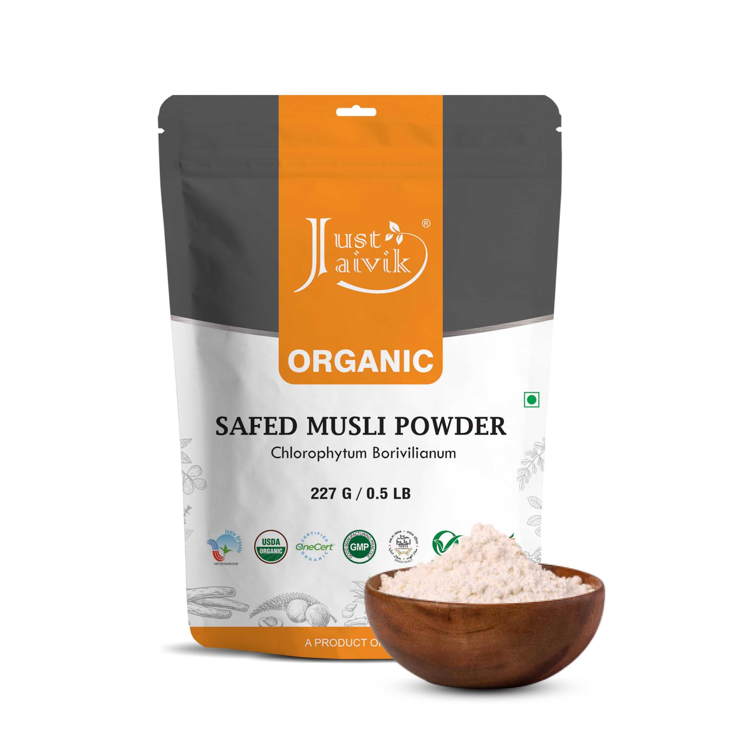 Processed in GMP Certified Facility with highest standards. Supports the physical strength. . An Herbal Supplement Numerous benefits to overall health. 100 Natural, no additives, Sustainably sourced and fairly traded. Organic Certified Safed Musli Powder, made as per USDA (NOP) Organic Standards.