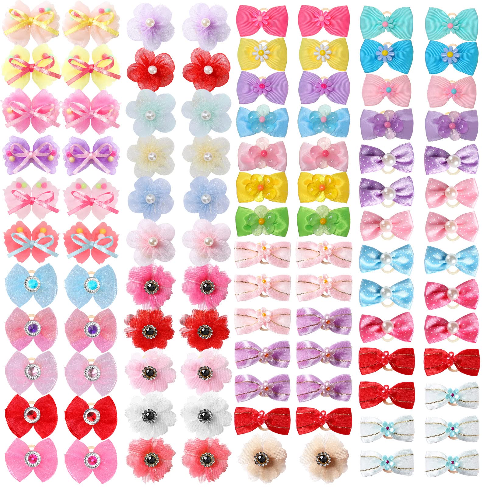 Features: Rich in styles: As these small puppy bows are designed in a variety of exquisite patterns and sweet colors, you can choose the style based on your dog's mood and outfit every day. Compact and portable: Adopting a mini size and light weight, you can easily carry these small dog hair accessories around without taking up much storage space, very convenient. Specifications: Material: webbing, organza, polyester, rhinestones, pearls, plastic beads and other materials Color: as shown in pictures Size: approx. 1.96 x 1.96 inches, 1.96 x 1.18 inches Package includes: 100 x Dog bows Notes: Manual measurement, please allow slight errors on size. The color may exist a slight difference due to different screen displays.Applicable Scenes: these cute dog grooming hair bows are not only suitable for daily wear, but also can be widely applied to weddings, birthdays parties, pet parties, holidays, festivals, photography, walks, travel, etc., making your pet look more delicate and charming, easily standing out from the crowd. Comfort and Sturdy: our hair bows for dogs are handmade of quality webbing, organza, polyester, rhinestones, pearls, plastic beads and other materials, safe and reliable, light yet sturdy, comfortable and easy to use, not easy to fade or break, mix all lovely patterns and colors, suitable for a variety of occasions. Proper Size: these cute dog hair accessories are available in 2 sizes of approx. 1.96 x 1.96 inches and 1.96 x 1.18 inches, the high elastic band at the back can stay on the puppy's hair to avoid it from slipping and falling out, not too tight or make your pet feel restrained, suitable for most small and medium pets, ideal for small puppies, Yorkie, Poodle, Pomeranian, Bichon Frise, Schnauzer, Shih Tzu, Chihuahua and more. Set of 100 Dog Bows: the package comes with a total of 100 dog hair bows in 8 different styles, with cute webbing bead bows, lace flower bows, bows with colorful rhinestones, pearl flower bows, and webbing flowers and pearl dot style, there are more than a dozen colors for you to choose and match with different styles of clothing and styles, such as blue, purple, red, pink, yellow and more, giving your puppy a cute, charming, elegant and fresh hairstyle. Sweet Gifts: these cute dog grooming bows are ideal gifts for pets, abundant quantities and styles for your pet's daily use and replacement, making them look adorable every day, you can share with family, friends, and besties with pets, which are also suitable for beauticians to bring more surprises to their pets.Best Sellers Rank: See Top 100 in Pet Supplies. : B0BBF9PP8W. Manufacturer: Yunsailing. Date First Available: August 22, 2022. Package Dimensions: 7.13 x 7.05 x 1.1 inches; 3.84 Ounces.