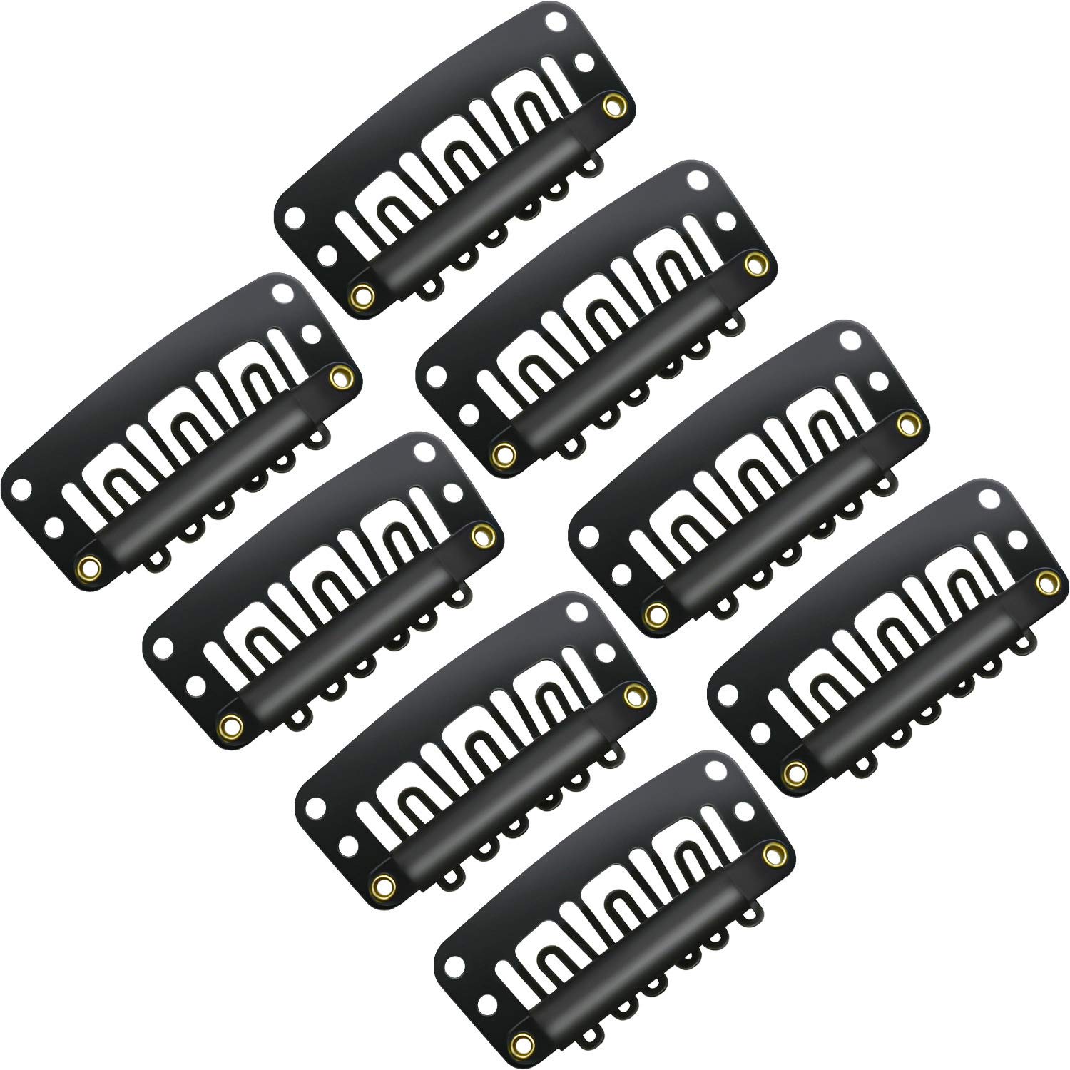 Features: Safe design: U shape design with 6 teeth, ensures harmless to your scalp, silicone bar can secure your hair and scale stay away from drag and injury, and the little holes provide convenience for linking or sewing the wig. Functional clips: Great for wigs, hair weaves, etc., these snap comb clips can help you to finish your DIY hair extension, set and fit your wigs, hair extensions and hairpiece easily. Sturdy material: The snap wig clip is made of quality rubber and stainless steel, durable and safe to use, soft rubber make it comfortable to wear, can be applied for a long time. Specifications: Material: rubber and stainless steel Color: black Size: 3.2 x 1.6 cm/ 1.3 x 0.6 inches Quantity: 100 pieces Package includes: 100 x Snap wig clips Note: The size above is measured by hand, please allow 2 - 3 mm difference.Size dimension: each clip measures 3.2 x 1.6 cm/ 1.3 x 0.6 inches, proper size for hair extension, suitable for most wigs, providing you a nice using experience. Functional clips: great for wigs, hair weaves, etc., these snap-comb clips can help you to finish your DIY hair extension, set and fit your wigs, hair extensions and hairpiece easily. Safe design: U shape design with 6 teeth, ensures harmless to your scalp, silicone bar can protect your hair and scale stay away from drag and injury, and the little holes provide convenience for linking or sewing the wig. Sturdy material: the snap wig clip is made of quality rubber and stainless steel, durable and safe to use, soft rubber make it comfortable to wear, can be applied for a long time. Large quantity: totally 100 pieces U-shape snap clips are provided, enough quantity for your demand, meet your various purpose, easy for replacement.