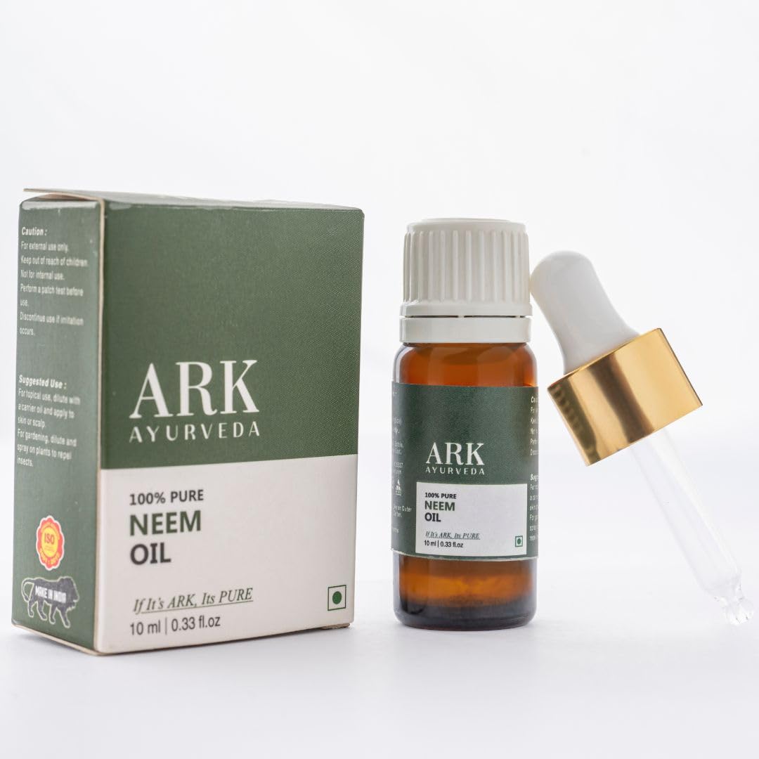 Ark Ayurveda's cold-pressed Neem Oil is a natural powerhouse, steeped in traditional Ayurvedic harvesting from India's ancient neem groves. Each 10 ml dropper bottle delivers nature's gift in its purest, most effective form. Expect a deep, herbaceous aroma with earthy undertones—rich but not overpowering—a hallmark of true, unrefined neem. Multi-Purpose Benefits Skin Care: Calms acne-prone and oily skin, supports evening complexion. Hair Scalp: Balances oil, tackles dandruff and itchiness for a healthier scalp. Oral Care: Diluted as a mouth rinse, this neem oil offers anti-aging support. Do not swallow. DIY Wellness: Ideal for custom skincare or aromatherapy blends. Usage Safety Tips Topical: Use 1 drop per teaspoon of carrier oil apply to skin hair scalp as needed. Oral Care: Mix 1 drop with 1 oz of water. Swish for 30 sec, then rinse—no swallowing. Always patch test. Avoid eyes. Keep out of reach of children. Brand Quality Assurance Crafted in small batches in India, our neem oil undergoes strict testing. Ark Ayurveda guarantees purity—no additives, no synthetic ingredients. You're covered by our 30-day satisfaction promise.