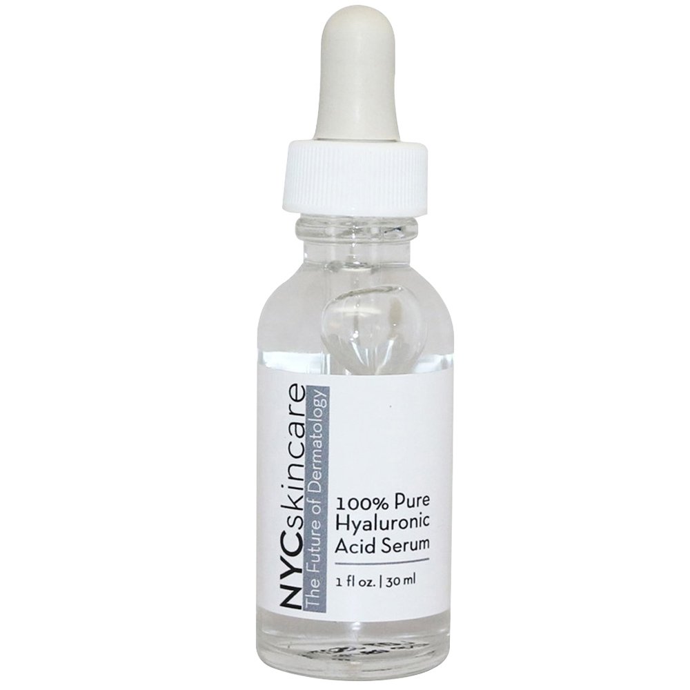 For beautiful, radiant and glowing-looking skin use our Hyaluronic Acid Serum formulated with cutting edge ingredients that may reduce the appearance of fine-lines and lead to skin that appears brighter, feels firmer, and looks stronger for a more youthful-looking complexion. This formula is 100% serum, with no unnecessary fillers and contains ingredients that may hydrate and moisturize, leaving skin feeling soft and appearing smooth, and is suitable for both men and women with all skin types and tones including normal, sensitive, mature, older, fair to darker skin tones such as African-American, Asian, Latin, Indian and Mediterranean. Our serum contains 1% Strength of 100% PURE Hyaluronic Acid. To use, apply twice daily (AM and PM). Wash skin using a gentle cleanser and pat dry. Apply serum to skin in a thin layer and allow to dry. Serum can be worn under sunscreen, moisturizer or makeup. Ingredients: Purified water (Aqua), Hyaluronic Acid, Phenoxyethanol, Ethylhexyglycerin. Caution: Discontinue use if redness or irritation occurs. Do not ingest. MADE IN THE USAWHY CHOOSE NYCSKINCARE: Developed by dermatologists to care for skin exposed to harmful environmental aggressors commonly found in major metropolitan areas, such as New York City. We develop advanced formulas to nourish skin from big city life & help to maintain a youthful-looking glow. We proudly make our products in the USA using the highest quality ingredients with the most advanced, results-focused formulas & animal cruelty-free practices. SUITABLE FOR ALL SKIN TYPES: Effective yet gentle enough for sensitive, mature, and aging skin types offering results you can see and feel. Within approximately 7-10 days skin may feel softer, appear smoother, look plumper more hydrated. With regular use, at 4-6 weeks some users reported a brighter looking glowing complexion along with skin that appears plumper and feels more supple. Individual results may vary. PURE INGREDIENTS: Our serum contains 1% Strength of 100% PURE Hyaluronic Acid. It does NOT contain any harsh chemicals, parabens, sulfates, or synthetic artificial dyes, filler or fragrances. Our formula helps to rejuvenate for skin that will feel smoother, appear firmer and look more radiant. Our products utilize start of the art ingredients, are animal cruelty-free and made in the USA. BRIGHTER & MORE EVEN COMPLEXION: Serum delivers intense hydration to improve overall appearance while working to make skin feel silky smooth & soft. With advanced moisture levels it works to improve the appearance of skin color and tone and reduce the appearance of fine lines and wrinkles. Skin will appear brighter, feel firmer and look stronger leading to a glowing luminous complexion. MAY REDUCE APPEARANCE OF FINE LINES & WRINKLES: Hyaluronic acid is a known humectant & may hold up to 1000 times its weight in water, binding cells to water molecules, locking in vital moisture that will help skin appear rejuvenated, look more plump, and feel firmer for a more youthful-looking appearance. As it offers advanced skin hydration, it moisturizes helping to reduce the appearance of crows feet, lip wrinkles, smile lines, neck creases, & forehead wrinkles.