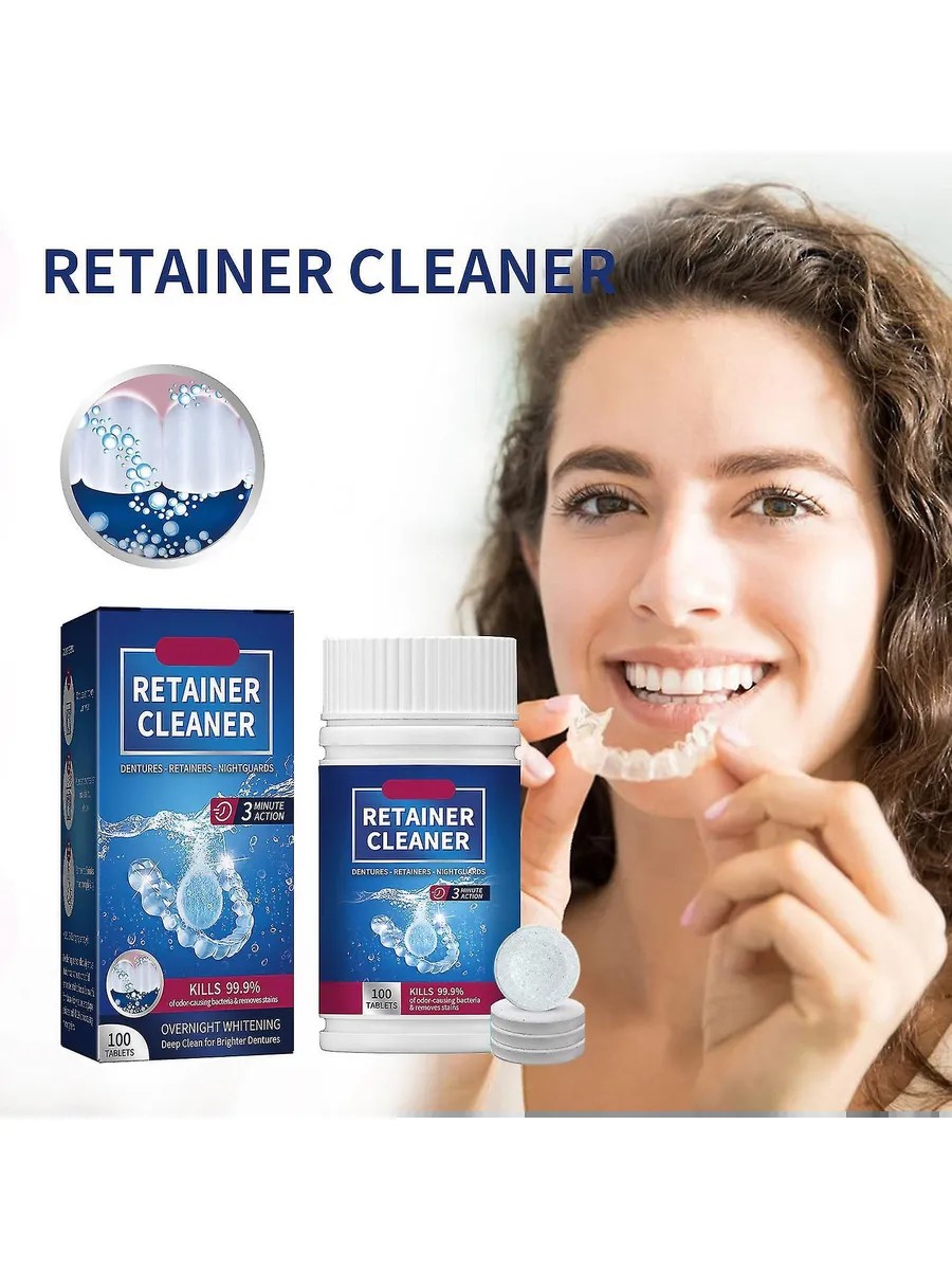 A reliable cleaner for dentures and orthodontic appliances. Removes plaque, stains, and odors. Safe and gentle, it won't scratch. Suitable for all types of appliances: dentures, aligners, and mouth guards. Simply dissolve the tablet, soak, and rinse. Ideal for travel.