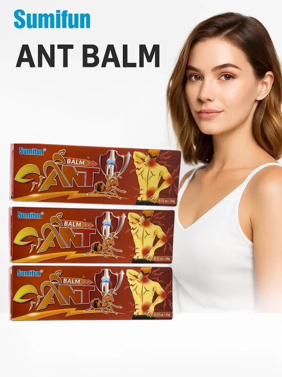 Ощущаете дискомфорт в спине, коленях или шее после нагрузок или переохлаждения? Sumifun ANT Balm — мощный согревающий бальзам с муравьиной формулой, созданный специально для снятия воспалений и болей в суставах, спине, пояснице, шее, плечах и коленях.