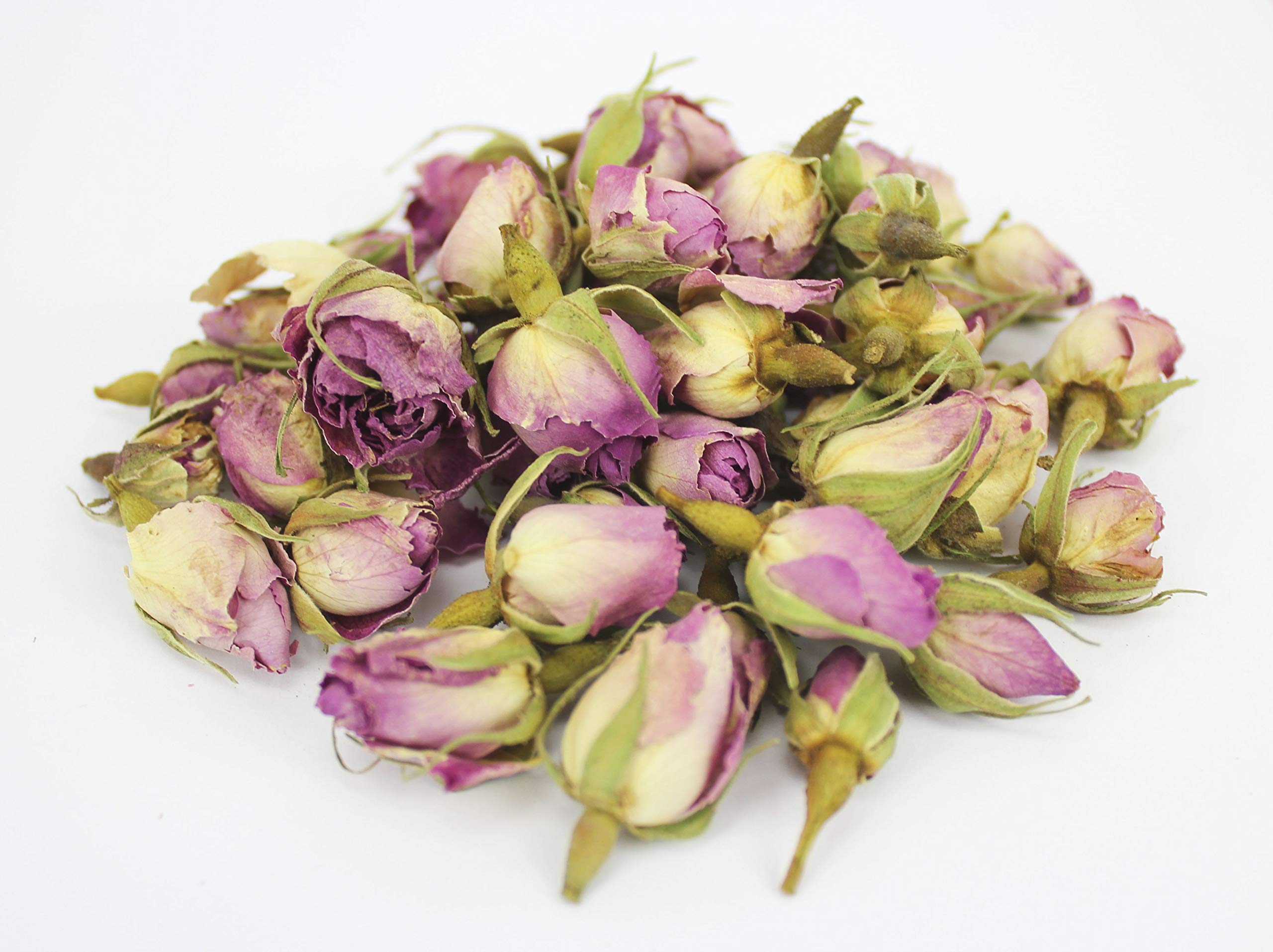 Whole-dried rosebuds. Scientific name: rose floret. Rosebuds are the dried, whole buds of the rose. They are perfect as bath additives, wedding decorations, and for making soap or scented candles. Rosebuds can be used as a tea or to flavor black, green, herbal, or fruit teas. Fragrant roses are also suitable for potpourri. Simply blend the rosebuds with lavender or jasmine flowers to make rose water. A 100 natural product: no artificial additives, no added flavorings, no added salt or sugar, vegan. Ingredients: rosebuds, rose. Storage: cool, dry, and away from light. Keywords: whole-dried rosebuds - rose tea - rose tea - decorative flowers - soap - buds - flowers - rose.
