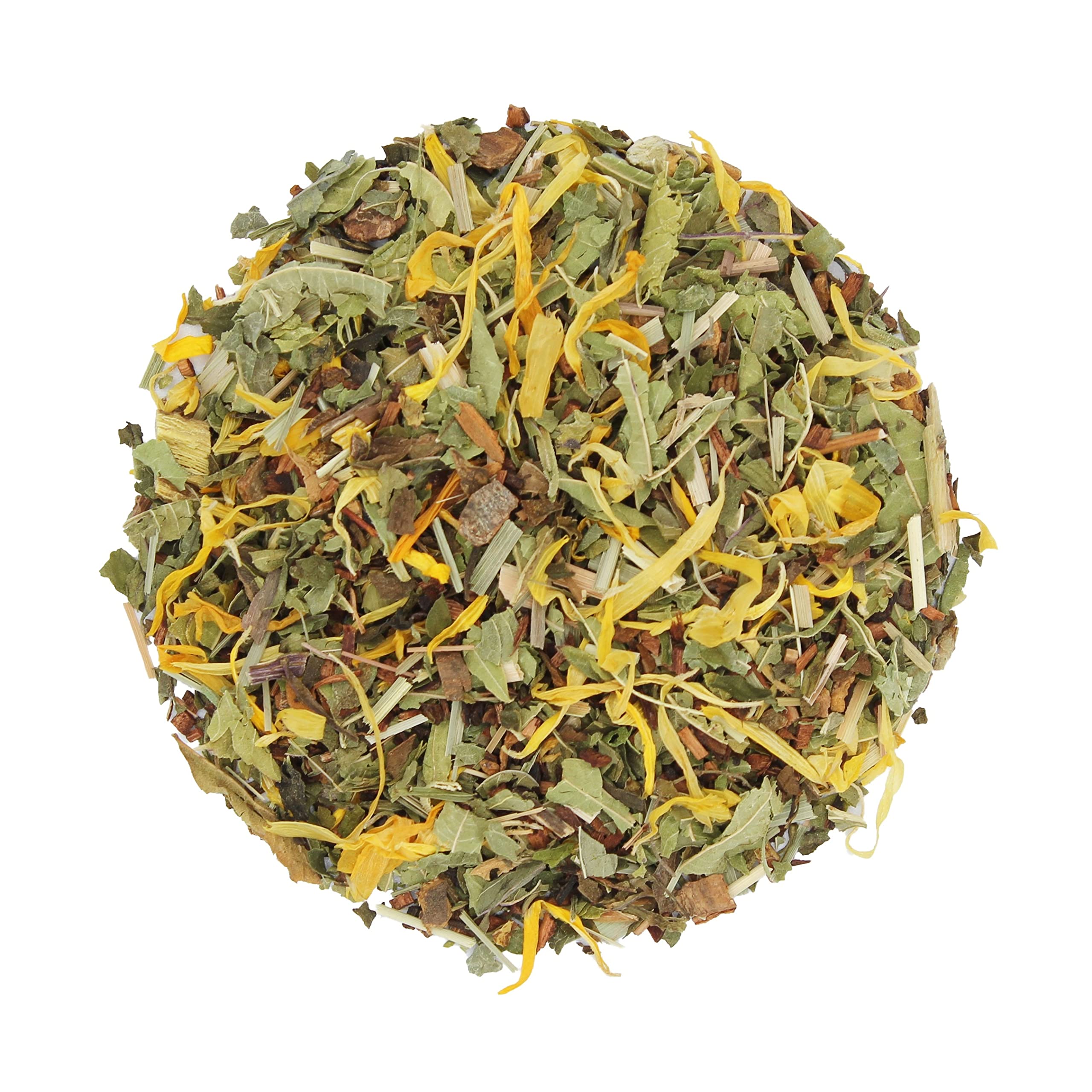Herbal tea blend. Unflavored herbal tea blend. A 100 natural herbal tea blend: no flavor enhancers, no artificial additives, no added flavors, no added salt or sugar, vegan. Ingredients: honey tea, cinnamon bark, verbena, peppermint leaves, lemongrass, licorice root, calendula flowers. Allergens: May contain traces of mustard, celery, sesame, gluten, and almonds. Storage: Store in a cool, dry place away from light. INGREDIENTS Honey tea, cinnamon bark, verbena, peppermint leaves, lemongrass, licorice root, calendula flowers.1000Kräuter Tisane Mélange de thé à base de plantes 3 x 100 g 300 gDESCRIPTION DU PRODUIT DESCRIPTION DU PRODUIT Tisane mélange de tisanes. Mélange de tisanes non aromatisé. Un mélange de tisanes 100 naturel : sans exhausteur de goût, sans additifs artificiels, sans arômes ajoutés, sans sel ni sucre ajouté, végétalien. Ingrédients: thé au miel, écorce de cannelle, verveine, feuilles de menthe poivrée, citronnelle, racine de réglisse, fleurs de calendula. Allergènes: Peut contenir des traces de moutarde, céleri, sésame, gluten et amandes. Stockage: frais, sec et à l'abri de la lumière. INGRÉDIENTS Thé au miel, écorce de cannelle, verveines, feuilles de menthe poivrée, citronnelle, racine de réglisse, fleurs de calendula.