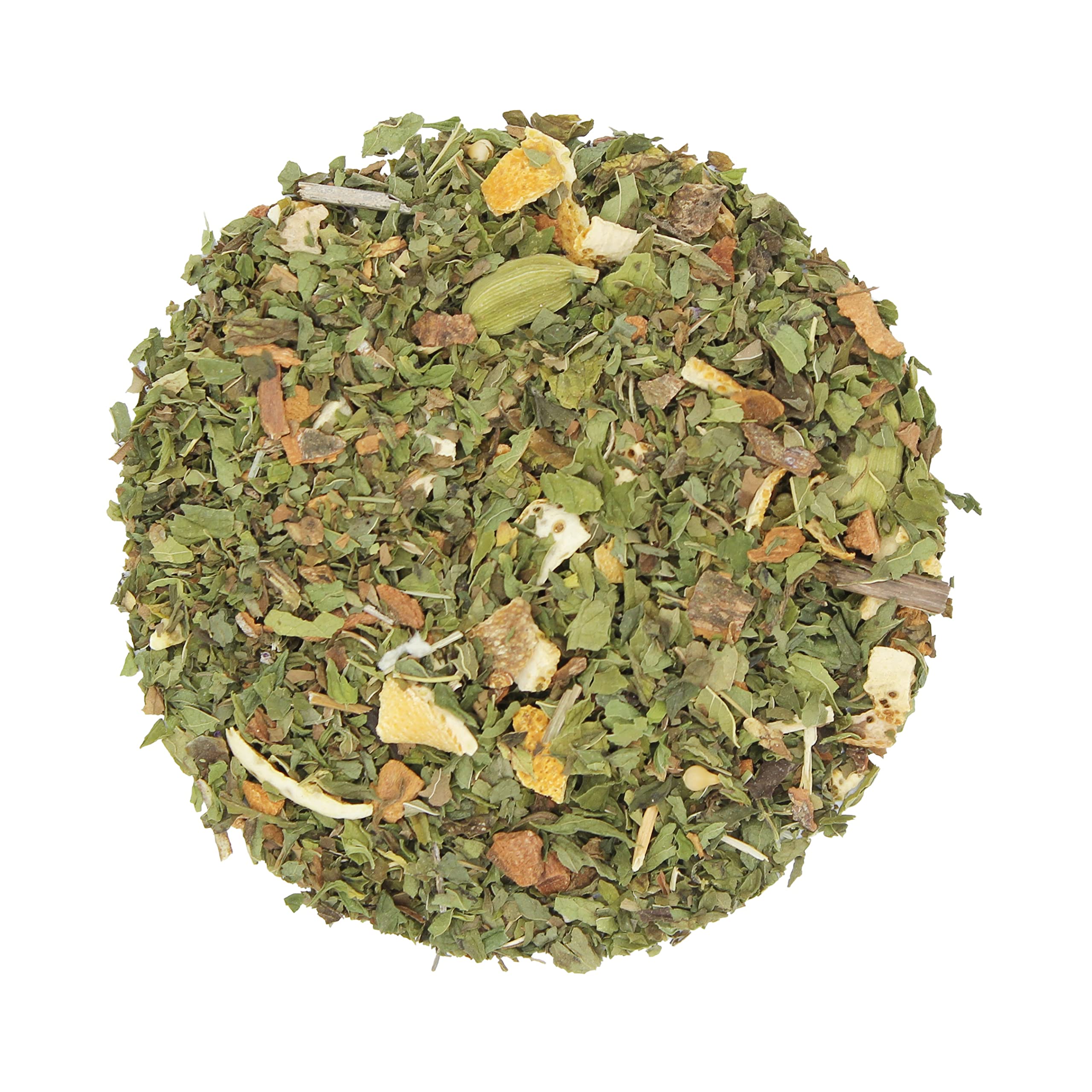 Herbal tea blend. Unflavored herbal tea blend. A 100 natural herbal tea blend: no flavor enhancers, no artificial additives, no added flavors, no added salt or sugar, vegan. Allergens: May contain traces of mustard, celery, sesame, gluten, and almonds. Storage: Store in a cool, dry place away from light.