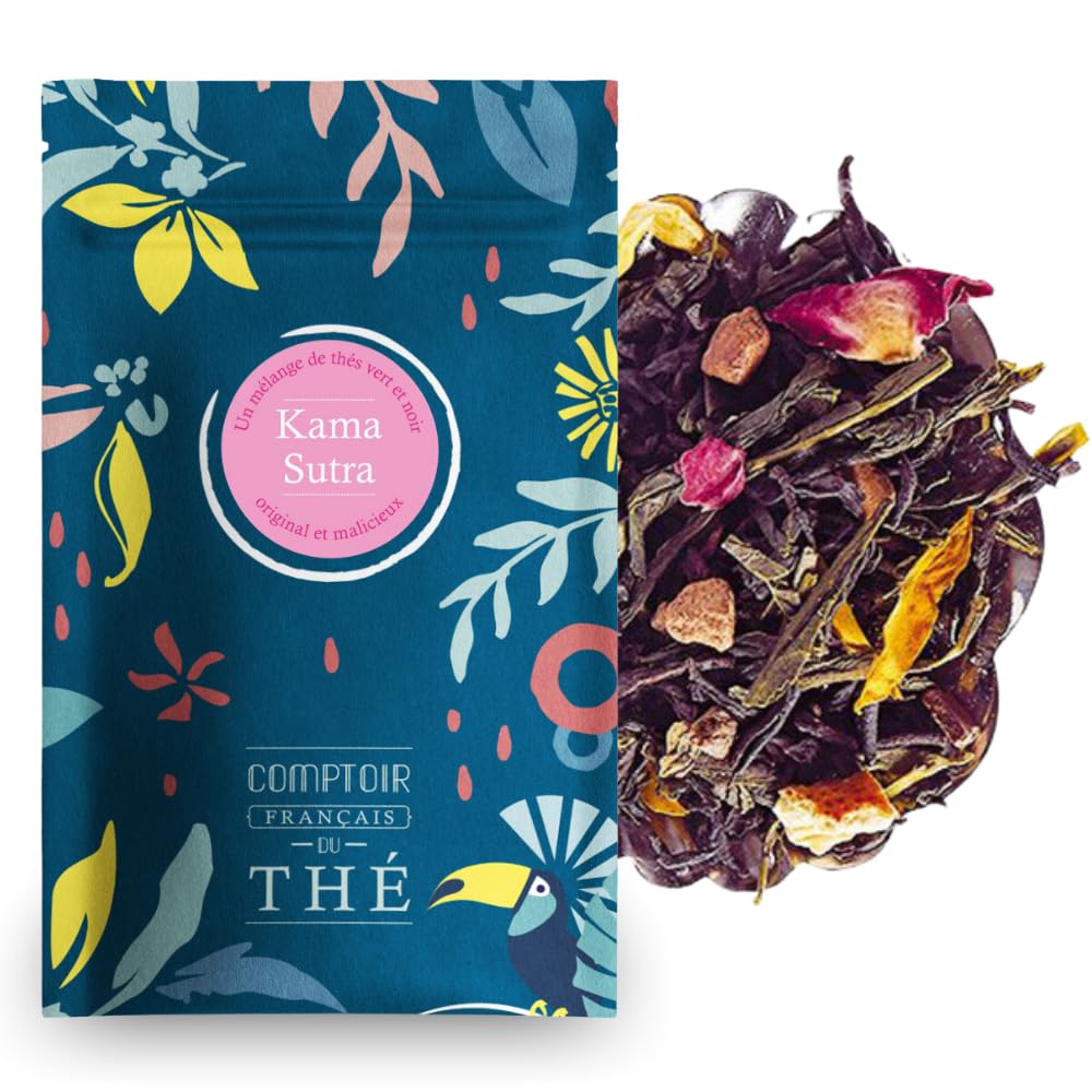 [GUARANTEED FRESHNESS] Packaged in a 100g resealable bag to preserve freshness and aroma. [DISCOVERY PLEASURE] Vary your enjoyment by choosing custom quantities to try different teas. [CHOICE] Discover large-leaf teas and unique ingredients that cannot be packaged in small bags. [ECO-FRIENDLY] Adopt an eco-friendly approach by reusing your usual containers and reducing packaging. [KAMA SUTRA] A blend of green and black tea with notes of ginger and spices, including cinnamon, cloves, orange and lemon peel, cardamom, anise, fennel, calendula, rose, and orange blossom.[FRAICHEUR ASSUREE ] Conditionné en sachet refermable de 100g pour préserver toute la fraîcheur et les arômes. [PLAISIR DECOUVERTE] Variez les plaisirs en choisissant des quantités personnalisées pour essayer différents thés. [CHOIX] Découvrez des thés à grandes feuilles et ingrédients uniques qui ne peuvent pas être conditionnés en petits sachets. [ECOLOGIE] Adoptez une démarche écologique en réutilisant vos contenants habituels et en réduisant les emballages. [KAMA SUTRA] Mélange de thé vert et noir aux notes de gingembre et d'épices, avec cannelle, clou de girofle, écorces d'orange et de citron, cardamome, anis, fenouil, souci, rose et fleurs d'oranger.100g de Thé Noir et Vert au gingembre et aux épices Pour une dégustation torride Kama Sutra COMPTOIR FRANÇAIS DU THÉ Kama-Sutra