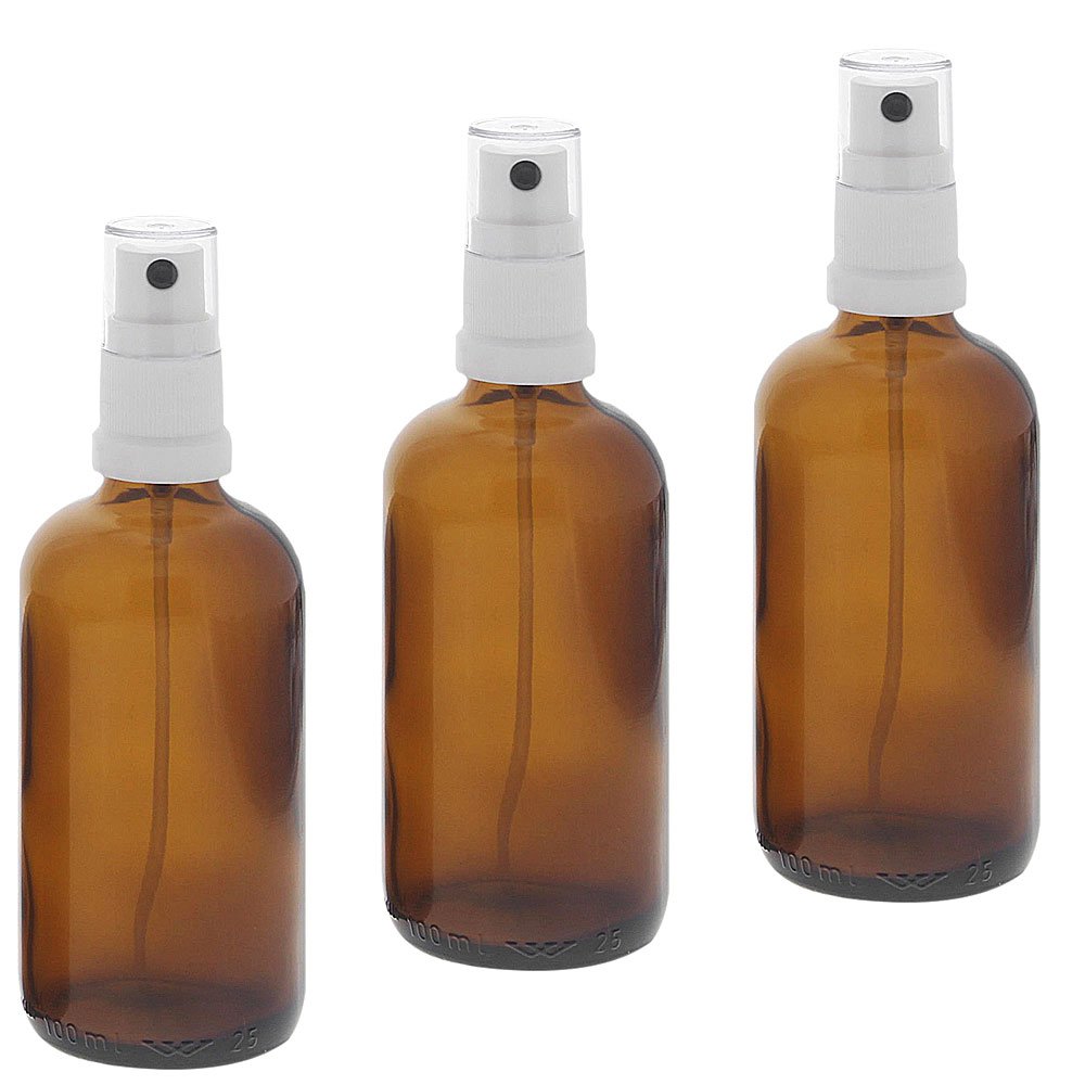 100ml Braunglas Zerstäuberflasche, Sprühflasche mit weißem Pumpzerstäuber. Kosmetex Parfümflakon, 3 x 100 ml