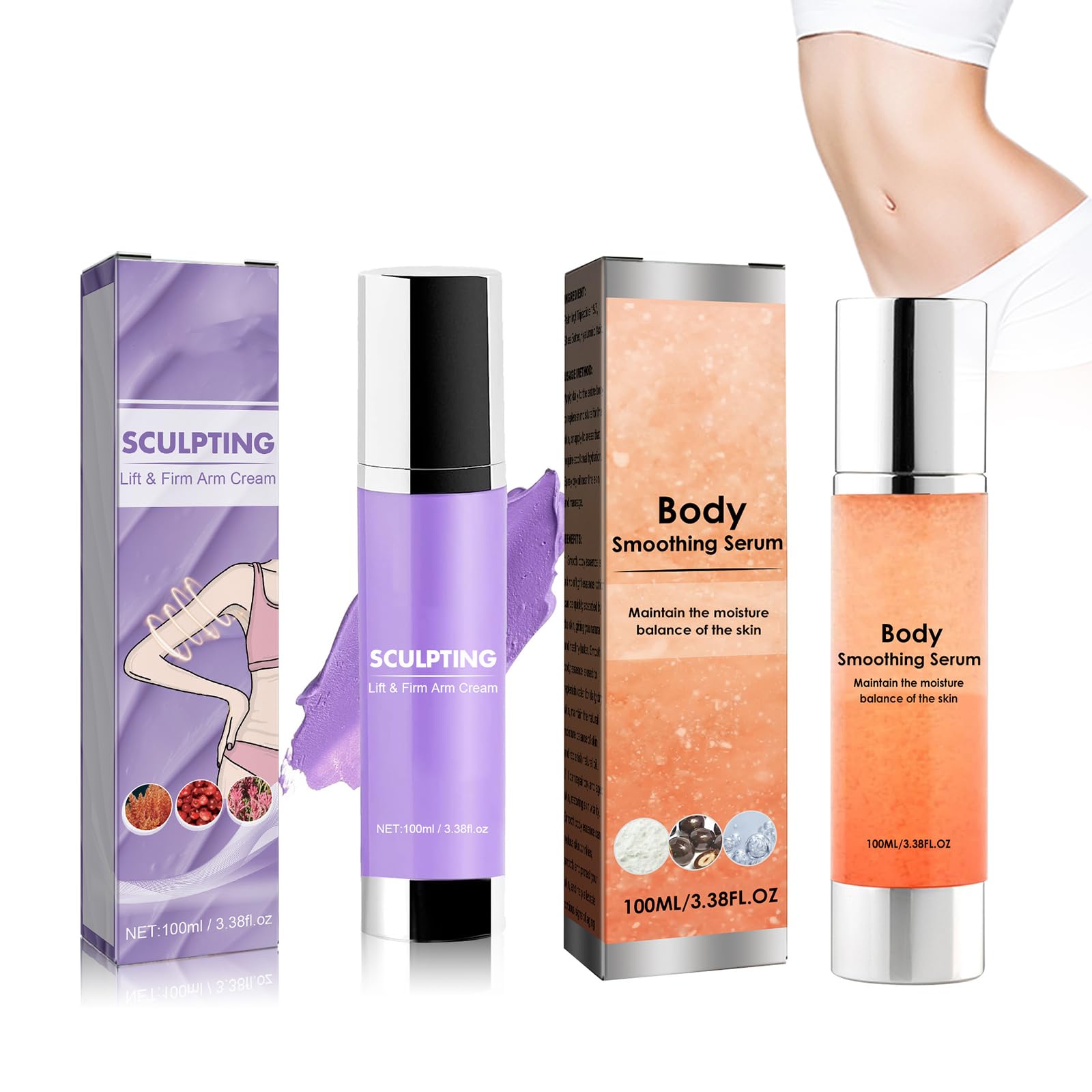 Suitable for all skin types: Whether you have oily, dry, or combination skin, our product quickly nourishes and hydrates. We recommend testing it first behind your ear or on your wrist to ensure it doesn't cause any adverse reactions before applying it liberally. Skin repair: The body serum locks in moisture, restoring an even and radiant skin texture. It's hydrating, non-greasy, and absorbs quickly. It evens skin tone and restores a youthful glow. Fast absorption: Its light, non-greasy texture quickly penetrates the skin for deep hydration. It leaves no residue after application. Deep hydration: Rehydrates the skin and provides it with nutrients. Its rich, creamy texture rehydrates the skin, improves dryness, roughness, and dehydration, leaving skin smooth and supple. Set: Includes a body serum and a body cream. The moisturizing body cream effectively reduces wrinkles and fine lines, leaving your skin youthful and radiant.Convient à tous les types de peau : que vous ayez la peau grasse, sèche ou mixte, notre produit nourrit et hydrate rapidement votre peau. Nous vous recommandons de le tester d'abord derrière l'oreille ou sur le poignet pour vous assurer qu'il ne provoque pas de réactions indésirables avant de l'appliquer généreusement. Réparation de la peau : le sérum pour le corps retient l'hydratation, restaurant une texture de peau uniforme et éclatante. Il est hydratant, non gras et pénètre rapidement. Il uniformise le teint et redonne à la peau son éclat de jeunesse. Absorption rapide : sa texture légère et non grasse pénètre rapidement dans la peau, pour une hydratation en profondeur. Il ne laisse aucun résidu après application. Hydratation en profondeur : réhydrate la peau et lui apporte des nutriments. Sa texture riche et onctueuse réhydrate la peau, améliore la sécheresse, la rugosité et la déshydratation, laissant la peau lisse et souple. Ensemble : comprend un sérum pour le corps et une crème pour le corps. La crème hydratante pour le corps réduit efficacement les rides et ridules, laissant votre peau jeune et éclatante.100ml Crème pour le corps au collagène et 100ml Sérum pour le corps, Hydratation et nutrition, Atténuation du teint terne, Lotion de soin pour la peau, cream
