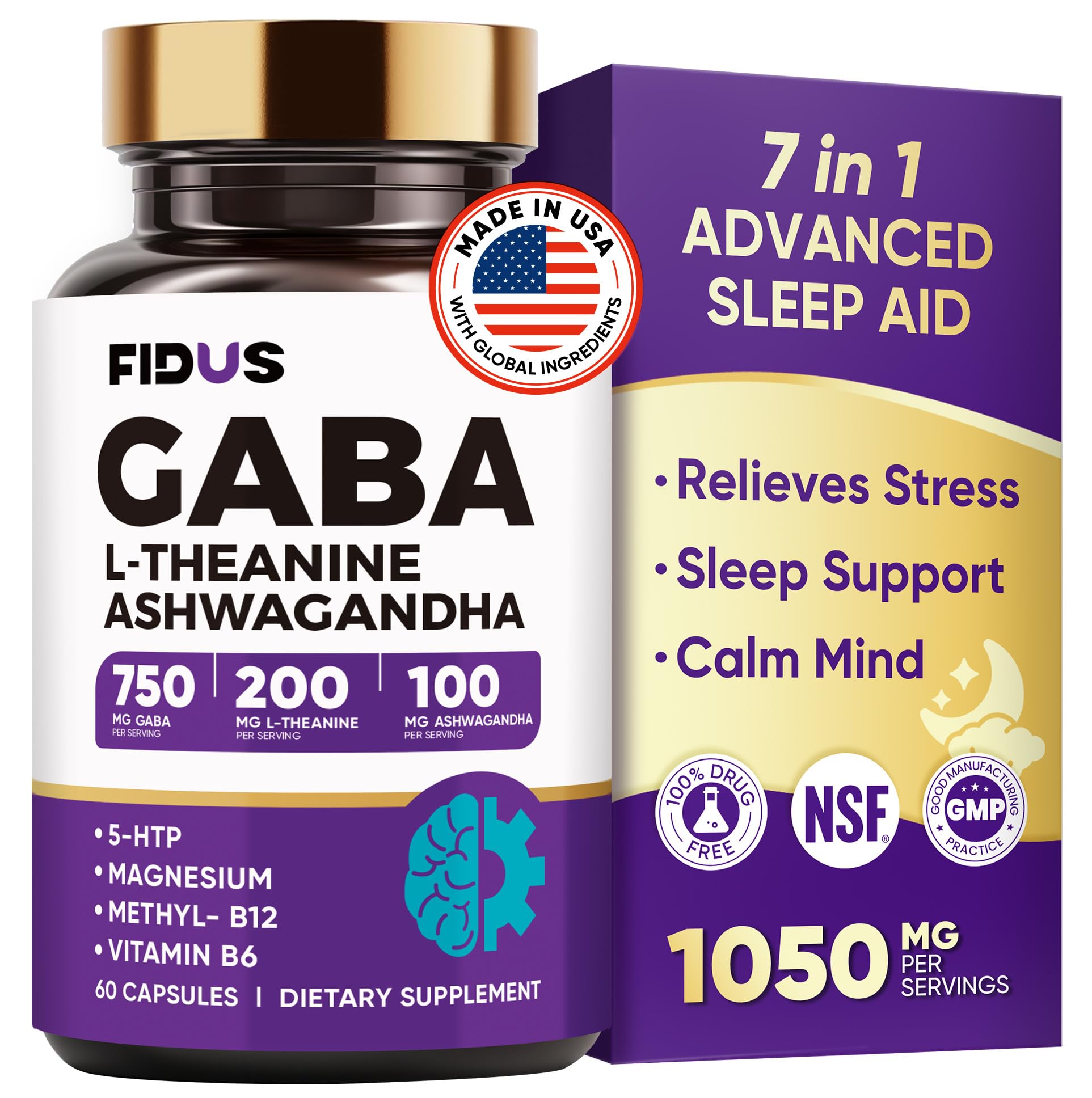 Calm Mind Balanced Life : Perfect for those facing fast-paced work, academic stress, or emotional fatigue. This calming formula helps ease tension and mood swings caused by daily pressure—so you can stay centered, support daily balance, and feel energized and emotionally balanced throughout the day. Melatonin-Free Non-Addictive: Unlike many melatonin-based supplements that can cause dependency and leave you groggy the next day, our formula promotes natural, restorative sleep without reliance, helping you wake refreshed and energized for a healthier body and mind. Synergistic 7-in-1 Blend: More than GABA. L-Theanine and Magnesium Glycinate work together to calm brain activity and relax the nervous system. Ashwagandha and 5-HTP support hormonal balance by reducing cortisol and boosting serotonin. B6 B12 enhance absorption, creating deeper, safer sleep synergy. 750mg GABA Sleep Support: Each capsule contains 750mg of GABA, a key neurotransmitter that calms brain activity, relieves stress, and helps you achieve deeper, more natural sleep. It brings tranquility and balance to your body and life, starting your journey to harmony. Our Brand Commitment : FIDUS puts your wellness first with 30 years of experience. If it doesn't meet your expectations for any reason, even if you've used it, we'll refund you with no return needed.