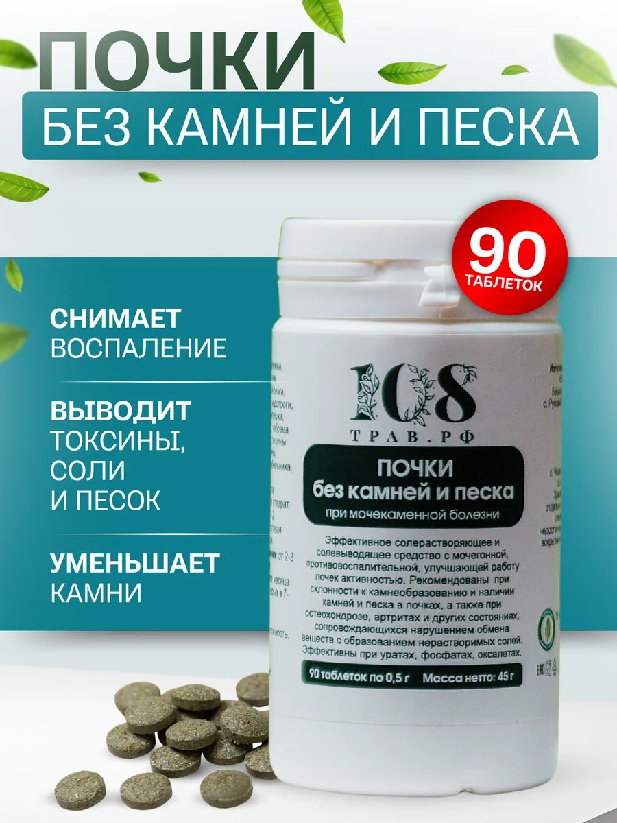 Травяной сбор Почки без камней и песка помогает от отеков, от цистита, от недержания мочи у женщин, снижает вероятность образования камней и песка.