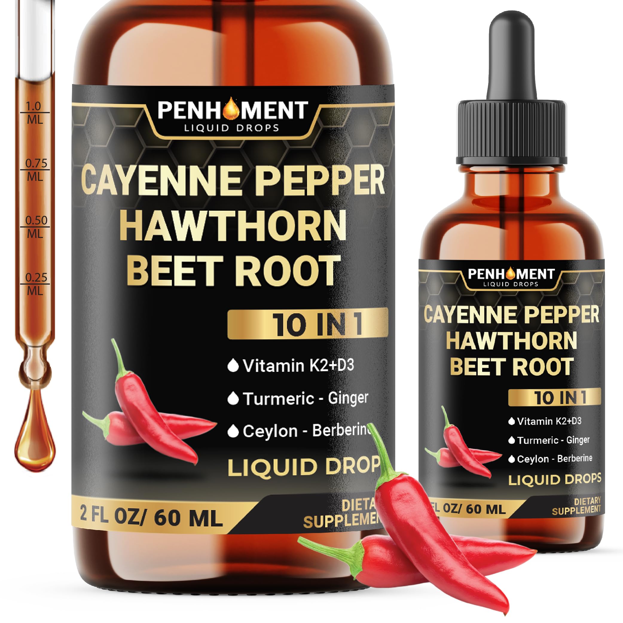 10in1 Cayenne Pepper Liquid Drops + Hawthorn Berry, Beet Root, Turmeric, Ginger and More - 2 Fl Oz - 2 Months Supply 2 Fl Oz (Pack of 1)