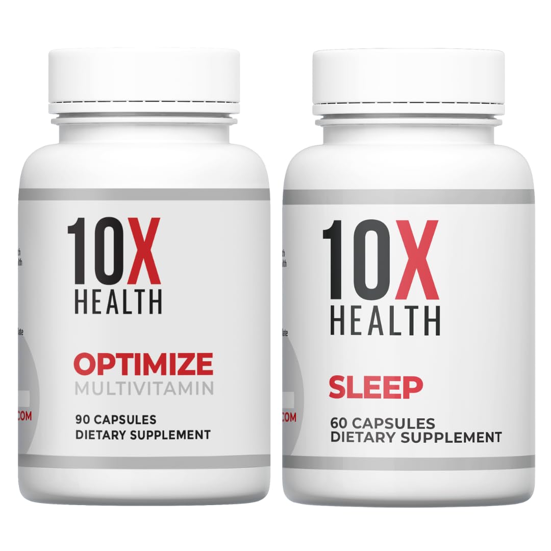 Make your daily essentials simple with the 10X Health Optimize Sleep Bundle. Optimize is a daily methylated multivitamin taken as 1-3 capsules per serving to consolidate key vitamins, minerals, and select extras such as N-acetyl-L-cysteine, CoQ10, alpha-lipoic acid, DIM, inositol, lutein, and zeaxanthin. Use it earlier in the day with a meal. For evening, Sleep (PM) provides Magnesium, L-Theanine, and Melatonin in an easy, once-a-day capsule to fit naturally into a consistent nighttime routine.