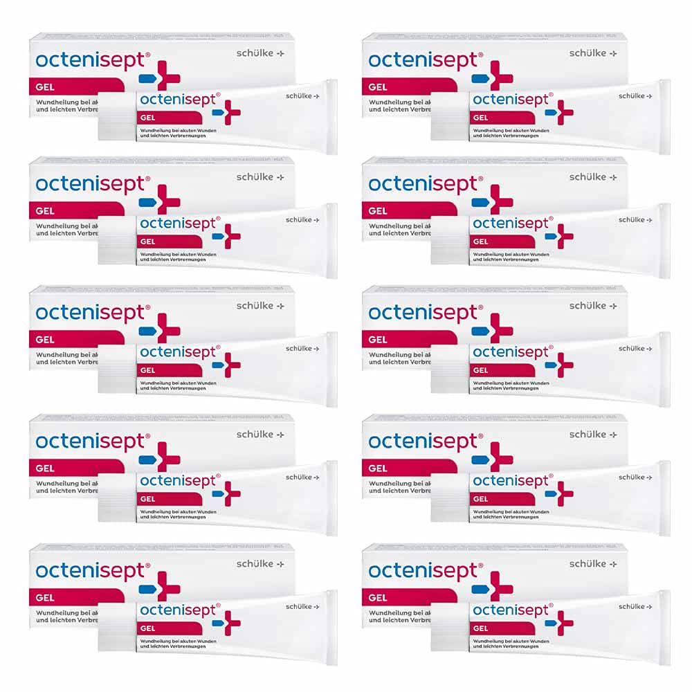 The Schülke wound care set contains 10 x 20 ml TubenOctenisept gel for the treatment of acute wounds and minor burns, as well as sunburn and itching. Contents of the wound care kit. 10 x 20 ml Octenisept gel. Properties of the wound gel Colorless and does not burn when applied. Provides wounds with optimal moisture. Promotes the healing process. Does not burn when applied. Relieves itching - cooling effect With octenidine, which as a preservative inactivates germs in the gel and thus builds up a protective barrier against invading germs. Excellent inactivation of germs after just 1 minute of application time. Non-irritating, non-sensitizing, pain-free, no tissue toxicity with inhibition of granulation and epithelization. Composition: Aqua purificata, propylene glycol, hydroxyethylcellulose, octenidine HCl Areas of application of the wound gel for sunburn and itching. For acute skin injuries such as abrasions, cuts and minor burns. Note about Schülkeoctenisept gel The tip of the gel tube should not touch the wound or other surfaces for hygienic reasons. Do not use for infusion or injection. Do not take! Only for external use on acute skin wounds. For chronic wounds, a sterile wound gel should be used. Only use undamaged containers. INGREDIENTS Aqua purificata, propylene glycol, hydroxyethylcellulose, octenidine HClFor acute skin injuries such as abrasions, cuts and minor burns. Provides wounds with optimal moisture, thus promoting the healing process. Colorless and does not burn when applied. 10 x 20 ml Octenisept Gel. Schülke Wound Care Set.10x Schülke octenisept Wundgel Packung (1 Stück) - B07PT8FWG1 De Schülke wondverzorgingsset bevat 10 x 20 ml TubenOctenisept gel voor de behandeling van acute wonden en lichte brandwonden, evenals zonnebrand en jeuk. Inhoud van de wondverzorgingsset. 10 x 20 ml Octenisept gel. Eigenschappen van de wondgel Kleurloos en brandt niet bij het aanbrengen. Verzorgt wonden optimaal met vocht. Bevordert zo het genezingsproces. Brandt niet bij het aanbrengen. Verlicht jeuk - verkoelend effect Met octenidine, dat als conserveringsmiddel ziektekiemen in de gel inactiveert en zo een beschermende barrière tegen binnendringende ziektekiemen opbouwt. Al na 1 minuut inwerktijd een uitstekende inactivering van ziektekiemen. Niet irriterend, niet-sensibiliserend, pijnvrij, geen weefseltoxiciteit met remming van granulatie en epithelisatie. Samenstelling: Aqua purificata, propyleenglycol, hydroxyethylcellulose, octenidine HCl Toepassingsgebieden van de wondgel bij zonnebrand en jeuk. Bij acute huidletsels zoals schaafwonden, snijwonden en lichte brandwonden. Opmerking over Schülkeoctenisept gel De punt van de geltube mag om hygiënische redenen de wond of andere oppervlakken niet aanraken. Niet gebruiken voor infusie of injectie. Niet innemen! Alleen voor uitwendig gebruik bij acute huidwonden. Voor chronische wonden moet een steriele wondgel worden gebruikt. Alleen onbeschadigde containers gebruiken. INGREDIËNTEN Aqua purificata, propyleenglycol, hydroxyethylcellulose, octenidine HClBij acute huidletsels zoals schaafwonden, snijwonden en lichte brandwonden. Verzorgt wonden optimaal met vocht, bevordert zo het genezingsproces. Kleurloos en brandt niet bij het aanbrengen. 10 x 20 ml Octenisept Gel. Schülke Wondverzorgingsset.