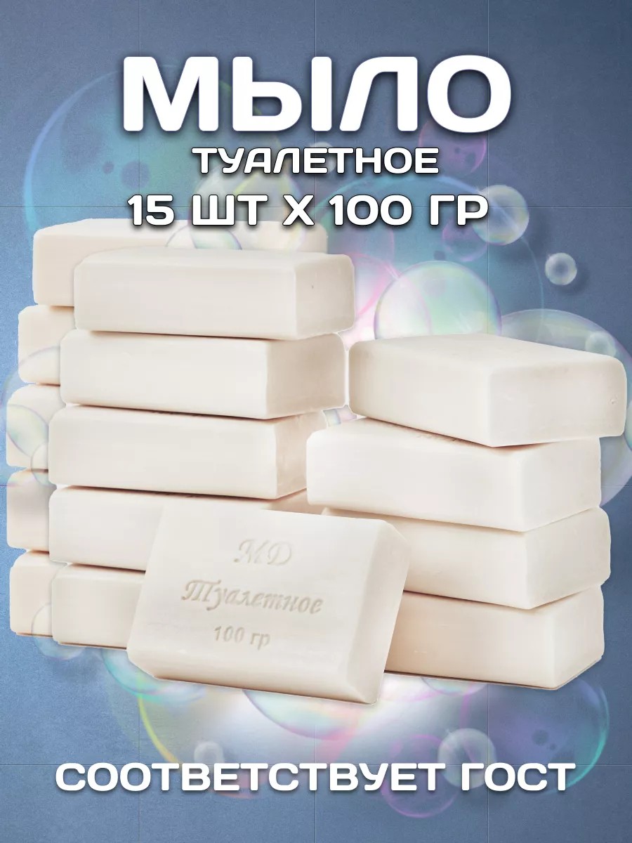 Solid toilet soap, GOST compliant, for hands. The box contains 1.5 kg (15 bars of 100 grams each). This bath and shower soap set can be used not only for hands, but also for the face and intimate hygiene. This household hand soap is economical and convenient for everyday use.